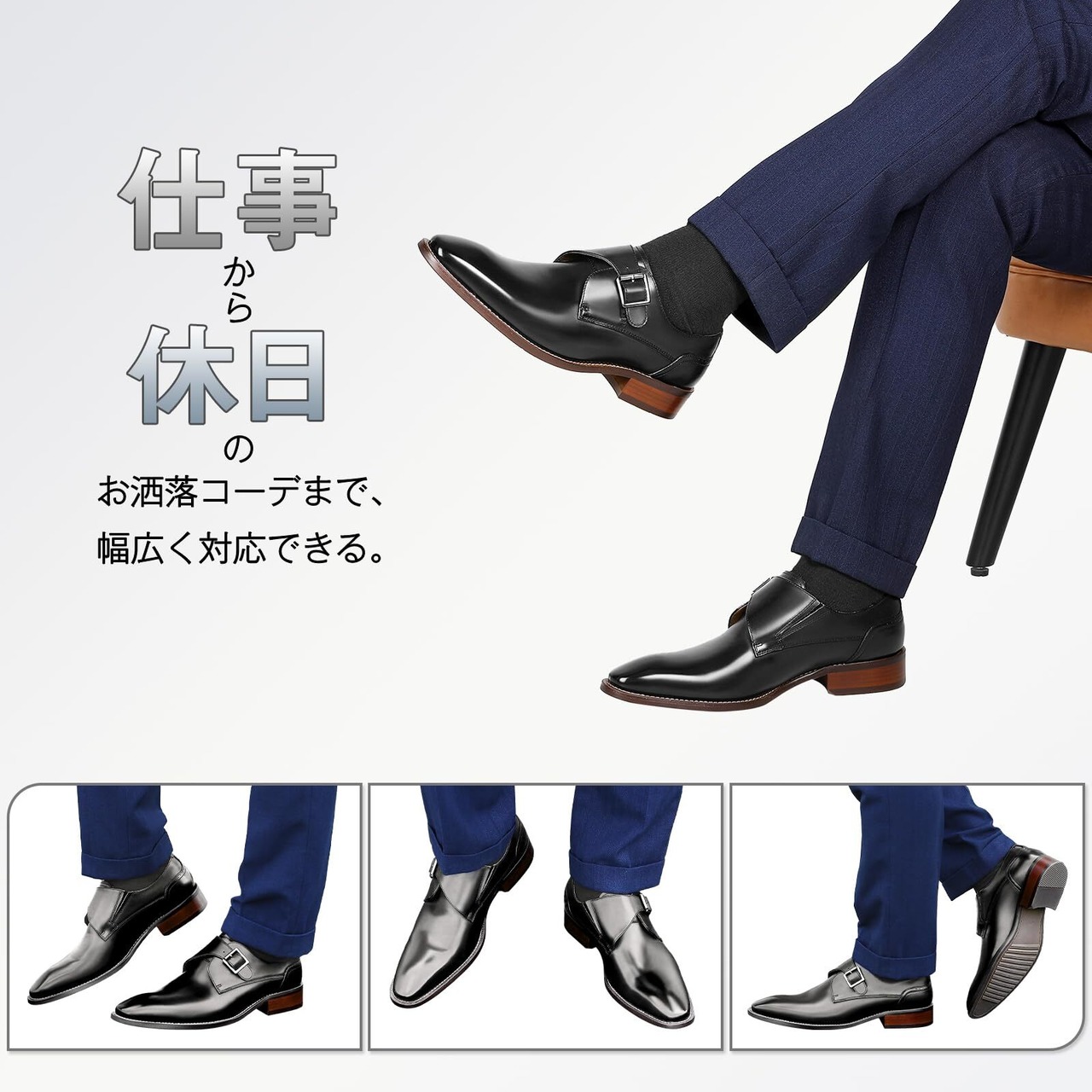 [フォクスセンス] ビジネスシューズ 革靴 メンズ 本革 ドレスシューズ プレーントゥ 紳士靴 モンクストラップ