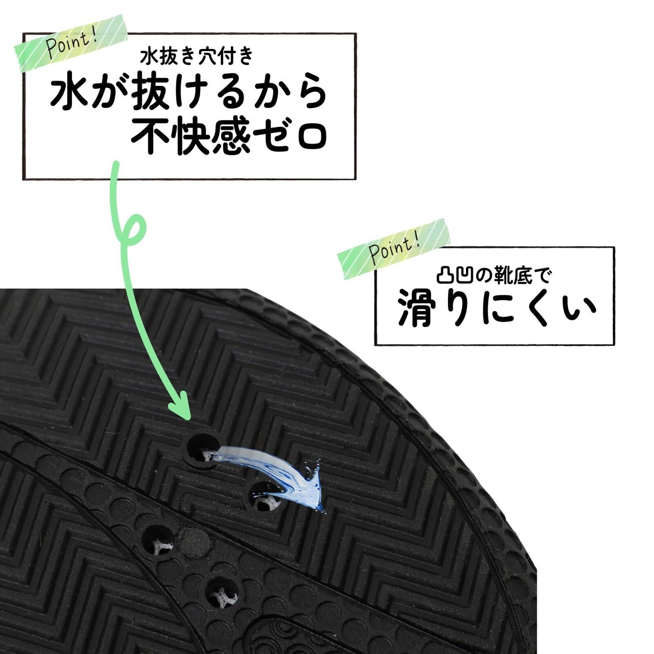【速乾&軽量!ライトな水遊びにおすすめのマリンシューズ】丸めて超コンパクトに持ち運びができるマリンシューズ。靴底に排水穴を設置し、水はけ抜群。水中で重くなりがちなシューズが重くならず、歩きやすさをキープします。水はけがいいので、陸にでてからの乾燥も早く足が蒸れにくく快適!海水浴や潮干狩り、公園での水遊びなどライトな水遊びにおすすめのマリンシューズです。