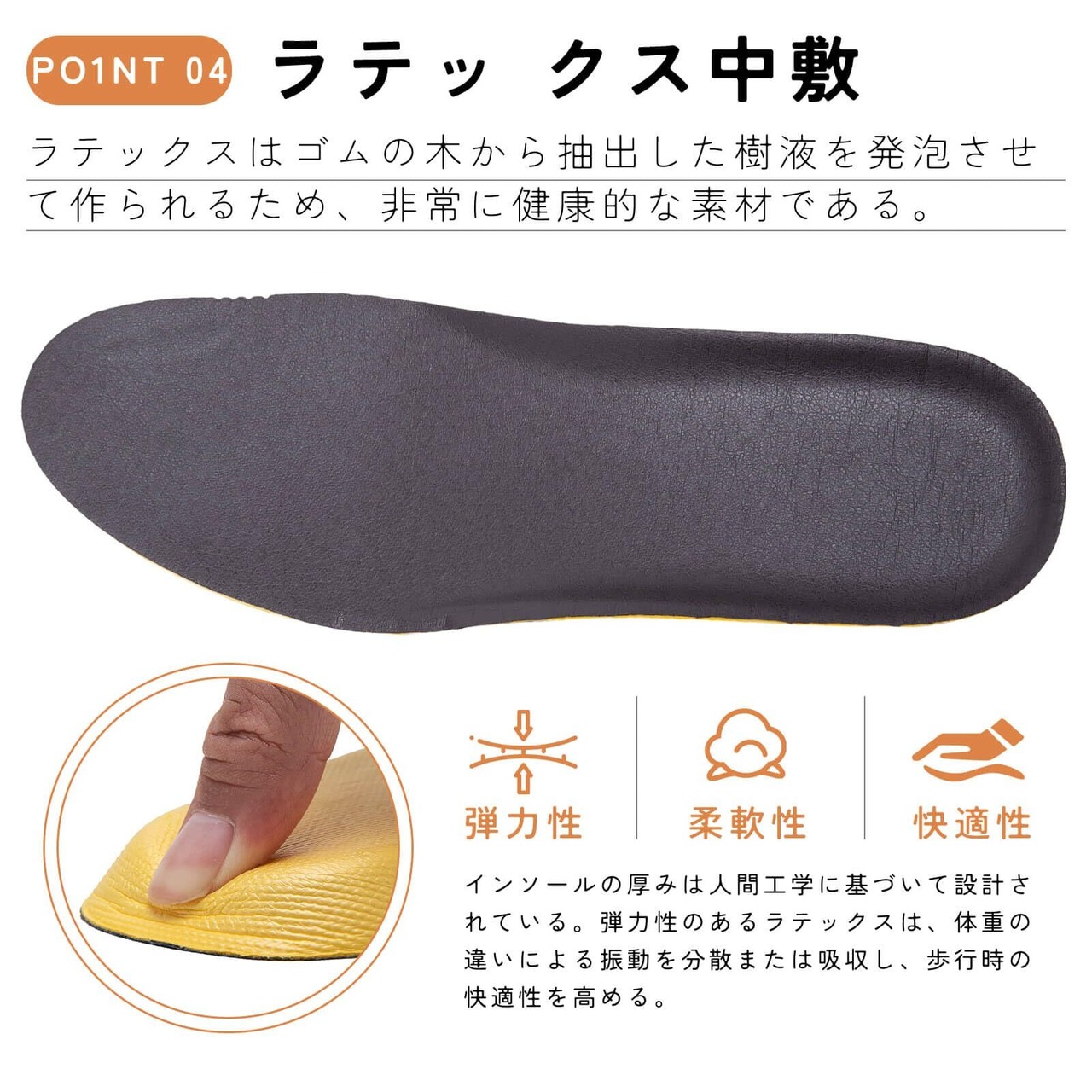 クッションインソール:クッション性のあるインソールは、通気性のあるソフトなライニングとソフトで柔軟性のある素材でできており、快適な履き心地とサポートを提供し、靴を履く際の負担を軽減します。