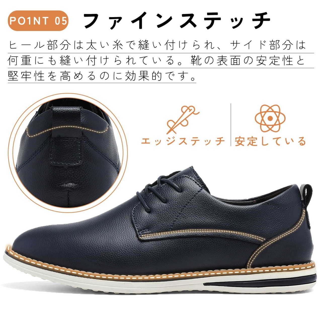 上質なアッパー:アッパーには通気性が良く肌に優しいプレミアム・レザー使用し、ファッショナブルなパンチングディテールを施し、品質、耐久性、ファッショナブルなスタイルを醸し出しています。