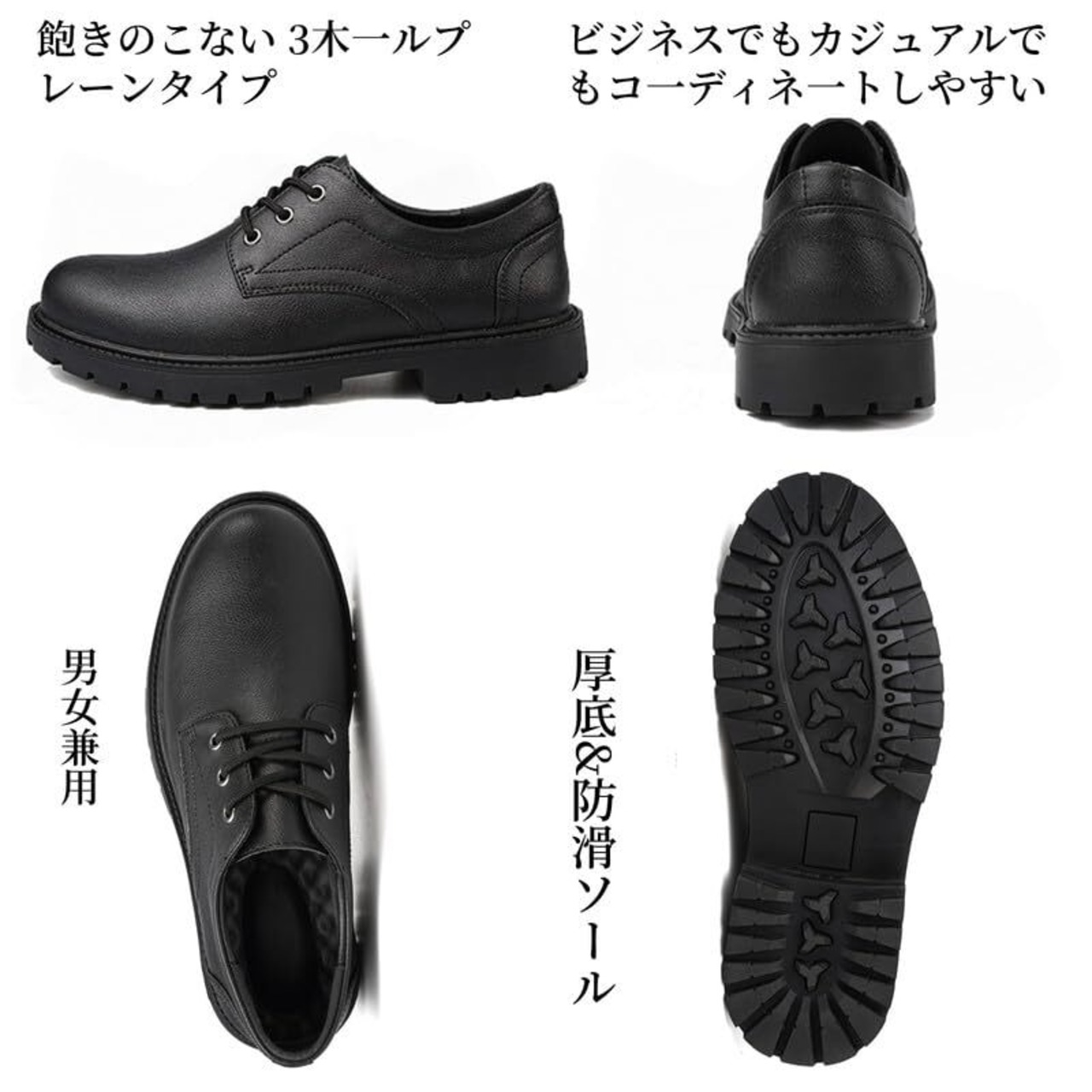 [Maxome] カジュアルシューズ メンズ レディース 革靴 ブーツ ポストマンシューズ 3ホール レースアップ ブーツ ワーク ビジネススニーカー 黒 厚底 靴 滑り止め 防水 軽量 23.0cm~28.0cm