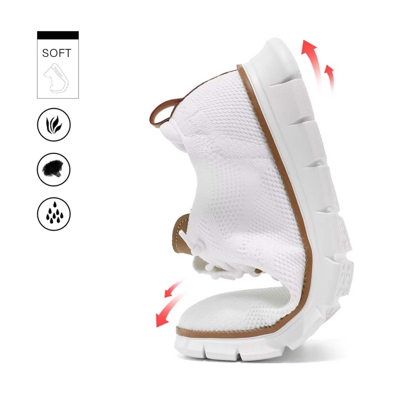 柔らかいMDソールを採用したウオーキングシューズ、滑り止めの効果がありながら、地面からの衝撃を緩和して足の膝負担軽減。長時間履いても疲れません。