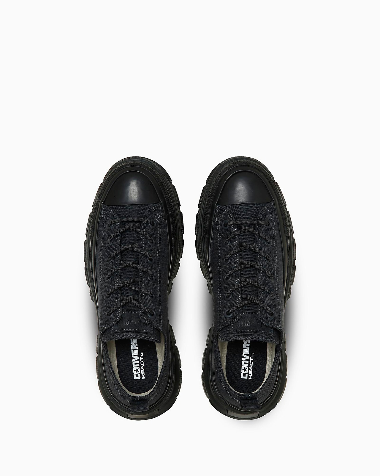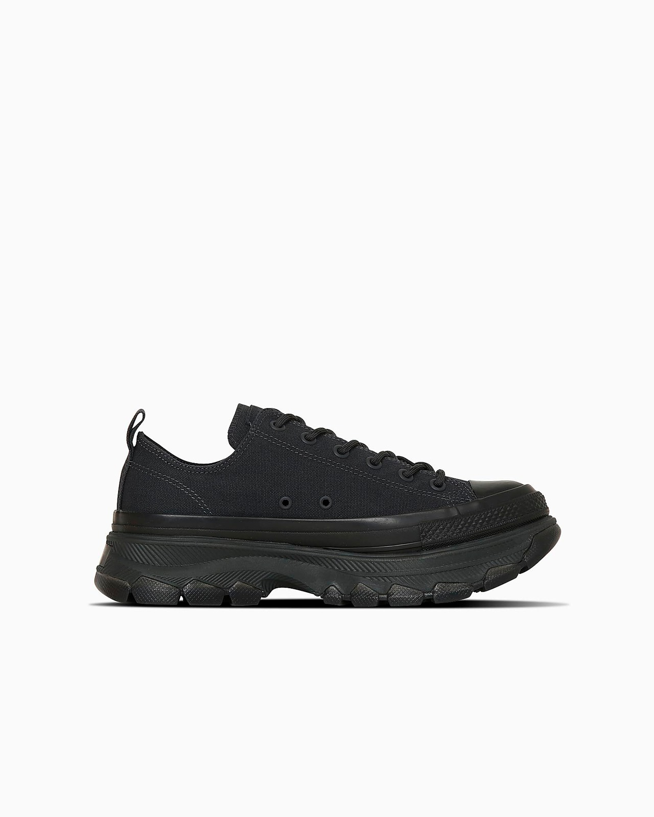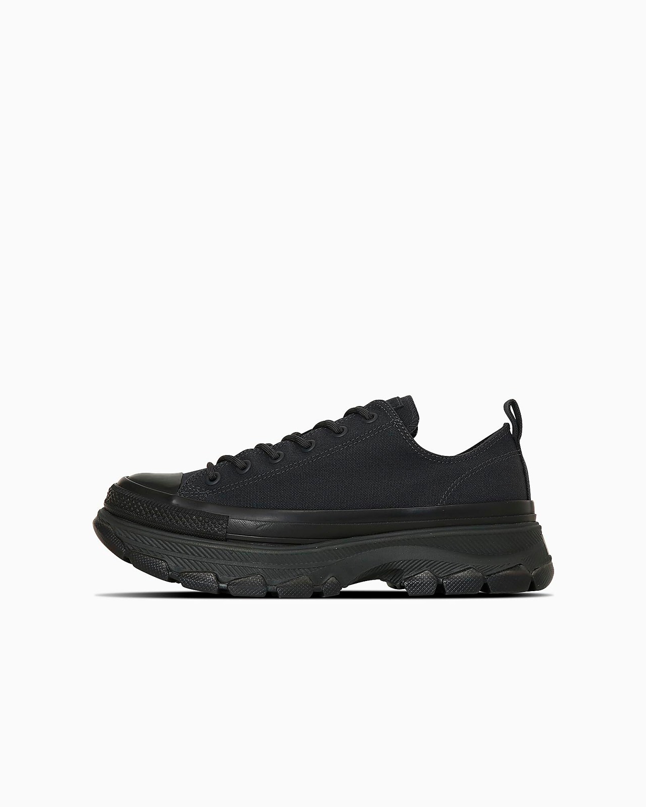 オールスターとトレッキングシューズをモチーフにしたボリュームのあるアウトソールを合体したデザイン。全体をモノカラーでまとめつつ、半透明のアウトソールやスエードのタンラベル、トレッキングシューズのような柄入りのシューレースを採用することで新鮮な印象に仕上げました。