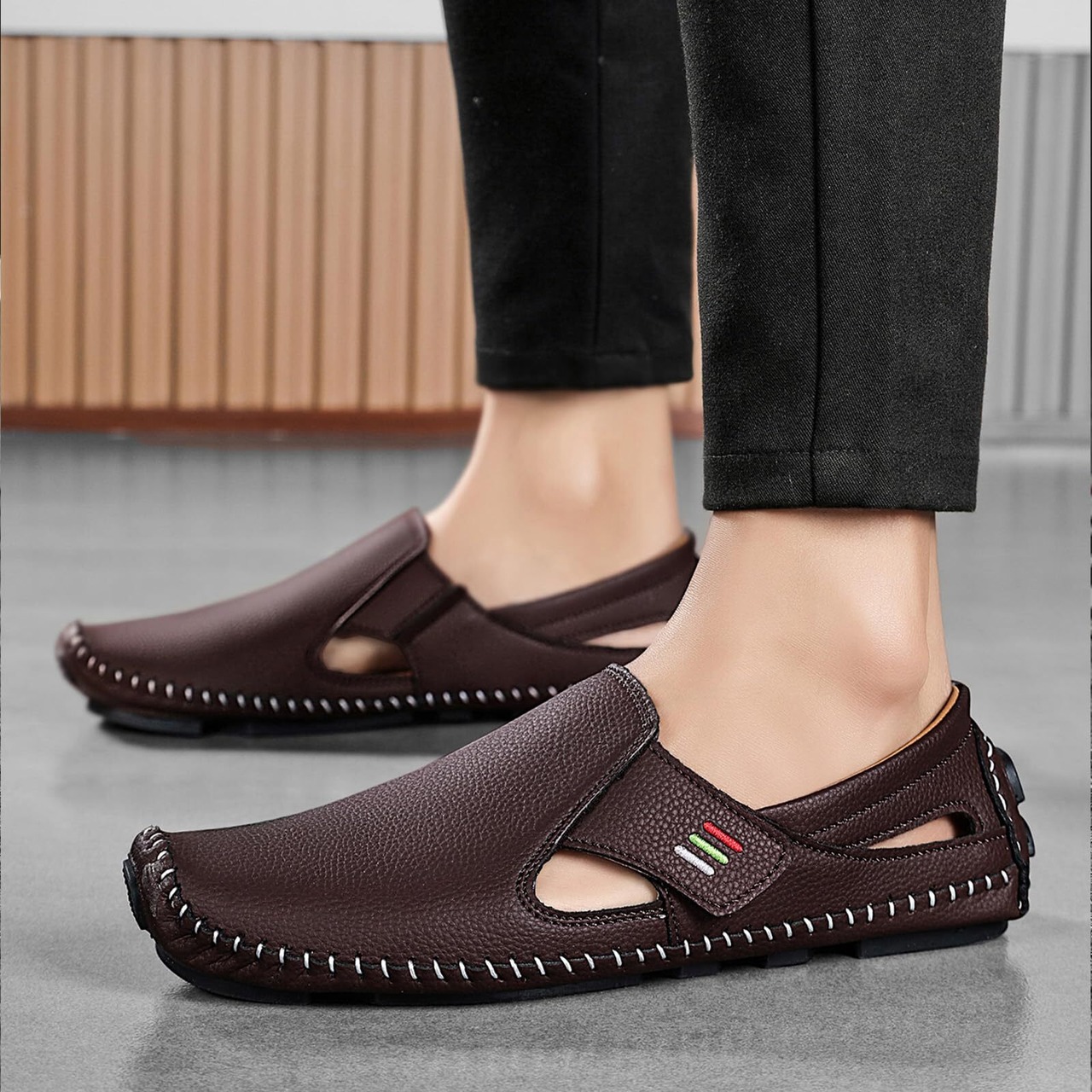 [DCZCELG] メンズ サンダル オシャレな モカシン サンダル ビジネス シューズ ローファー スリッポン ソフトモカシン 通気(サイズが0.5cm小さい)