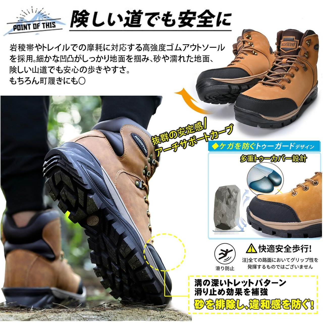 【防水・透湿・耐水圧機能を融合した最強ブーツ!】5cmの6時間防水仕様。安心な透湿防水レザーを使ったの上、アッパーにも防水フィルムライニング素材と防水テープで補強されており、水の染み込むことをガッチリ防ぐことができ、水分の多い雪には強く、積雪や降雪時靴内の爽やかも保ちできます。(※完全防水ではありません、使う状況により、防水効果も違うので、流れ水にご注意!)