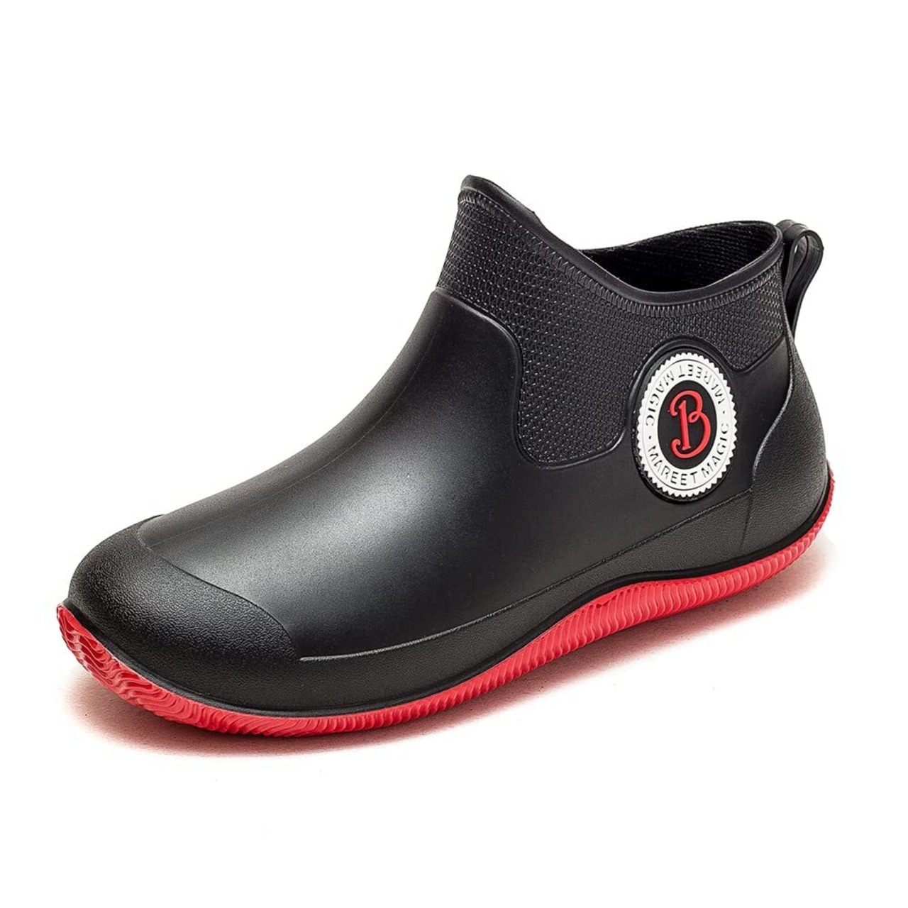 【快適でカッコいい】伝統な雨靴のイメージを一転し、雨の日に使うだけではなく、晴れた日に履いてもオシャレなレインブーツです。帰宅時に雨がやんでいても違和感なく使える晴雨兼用デザインとなっております。柔軟性のある天然ゴムを採用し屈曲性に優れ、防水性も抜群で、長時間履いても快適な履き心地を実現します。