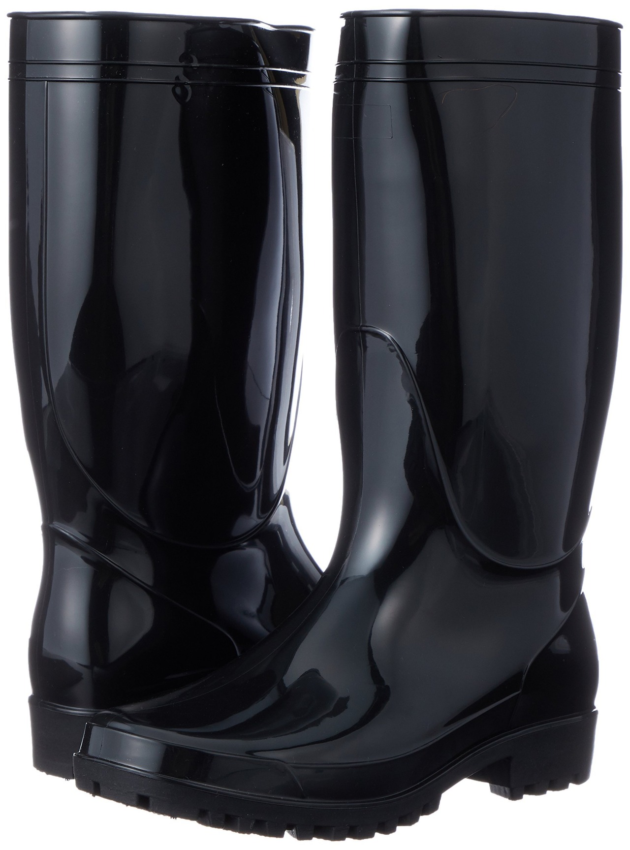・つやあり質感、ブラックカラーのシンプルかつオーソドックスなスタイルの長靴です。