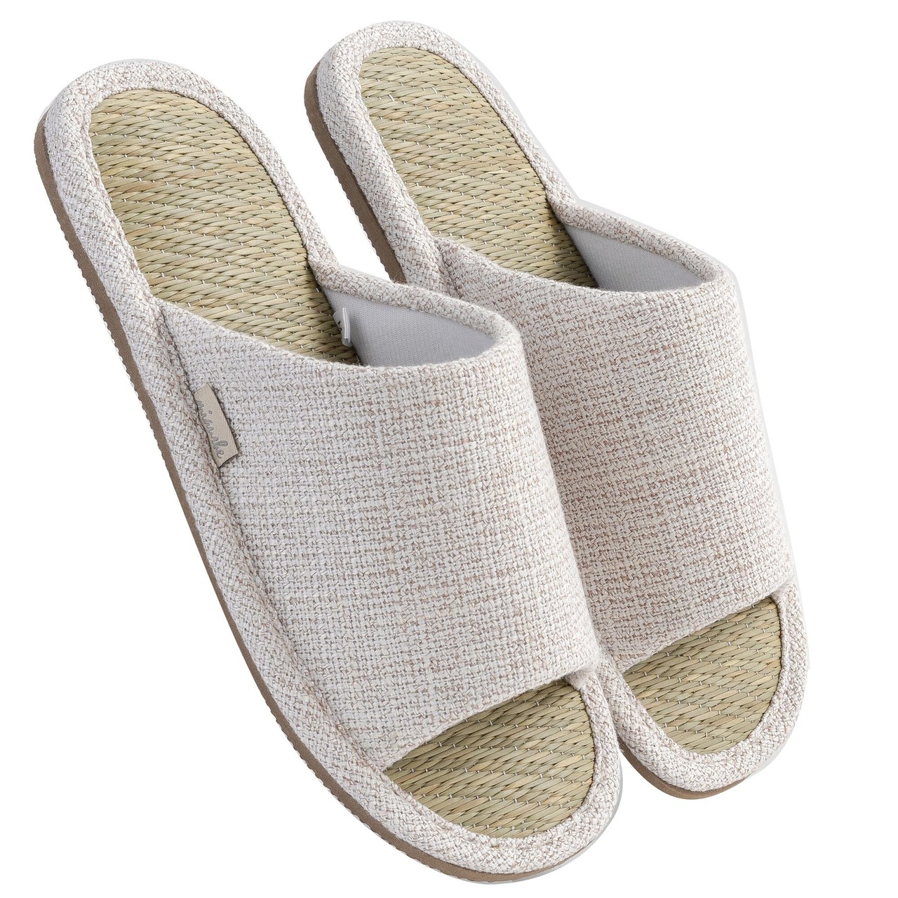 [mianshe] スリッパ い草 ルームシューズ 春夏 室内 リネン 亜麻 男女兼用 涼しい 滑り止め むれない 室内はき 軽量 前開き 無地 井草