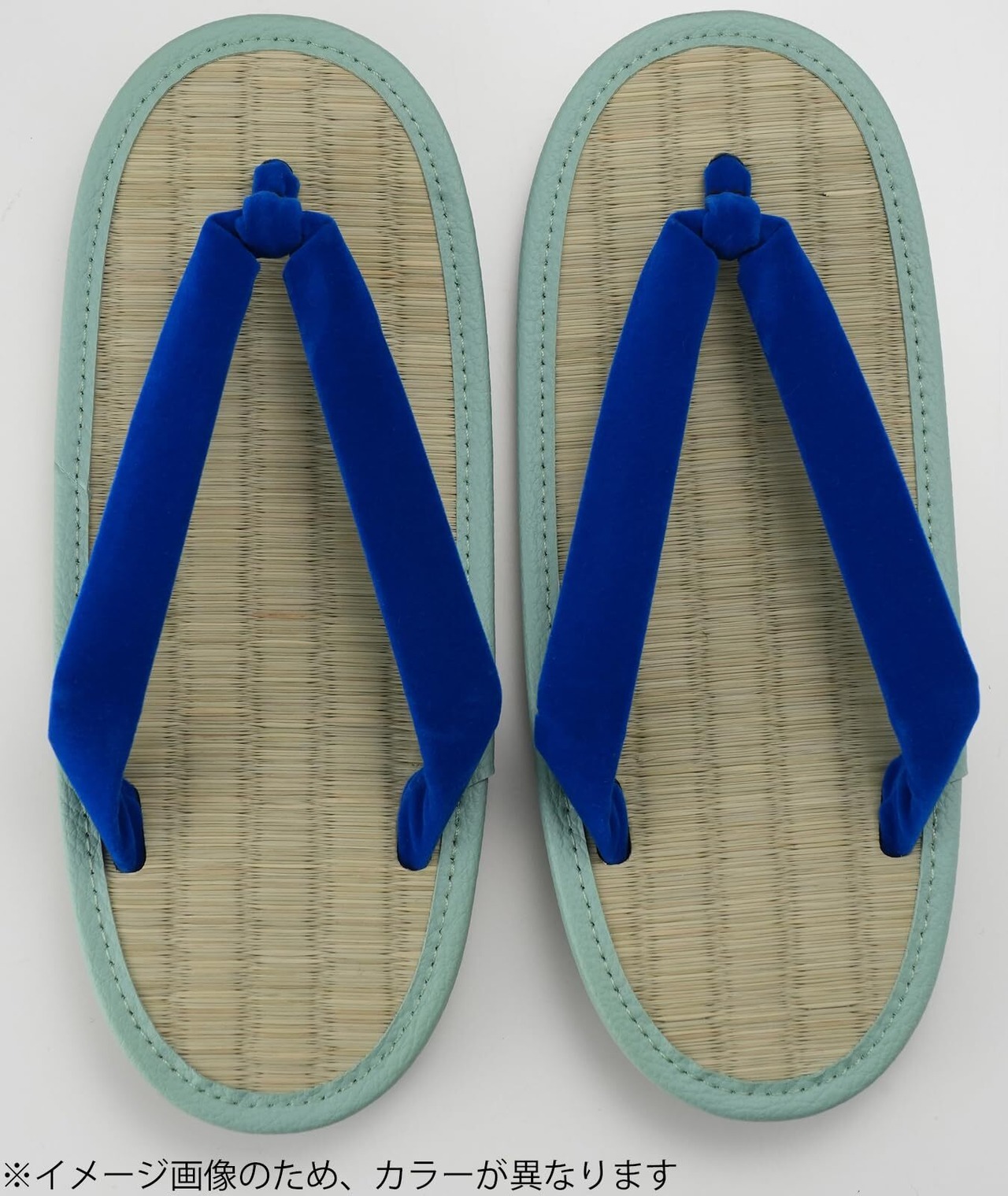素材・材質:鼻緒/(基布)レーヨン・(フロッキー)ナイロン、鼻緒芯(紐)/ポリプロピレン・ナイロン・ポリエステル、中底(上部)/天然い草、底材/ゴム底、パイピング部/PVC