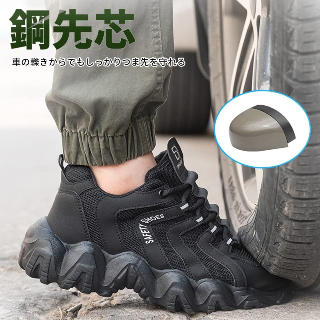 [PAFHL] 安全靴 メンズ ワークマン レディース 作業靴 鋼先芯 黒 ブラック つま先保護 防滑ソール 貫通防止 工場現場 衝撃防止 23.0cm-29.0cm
