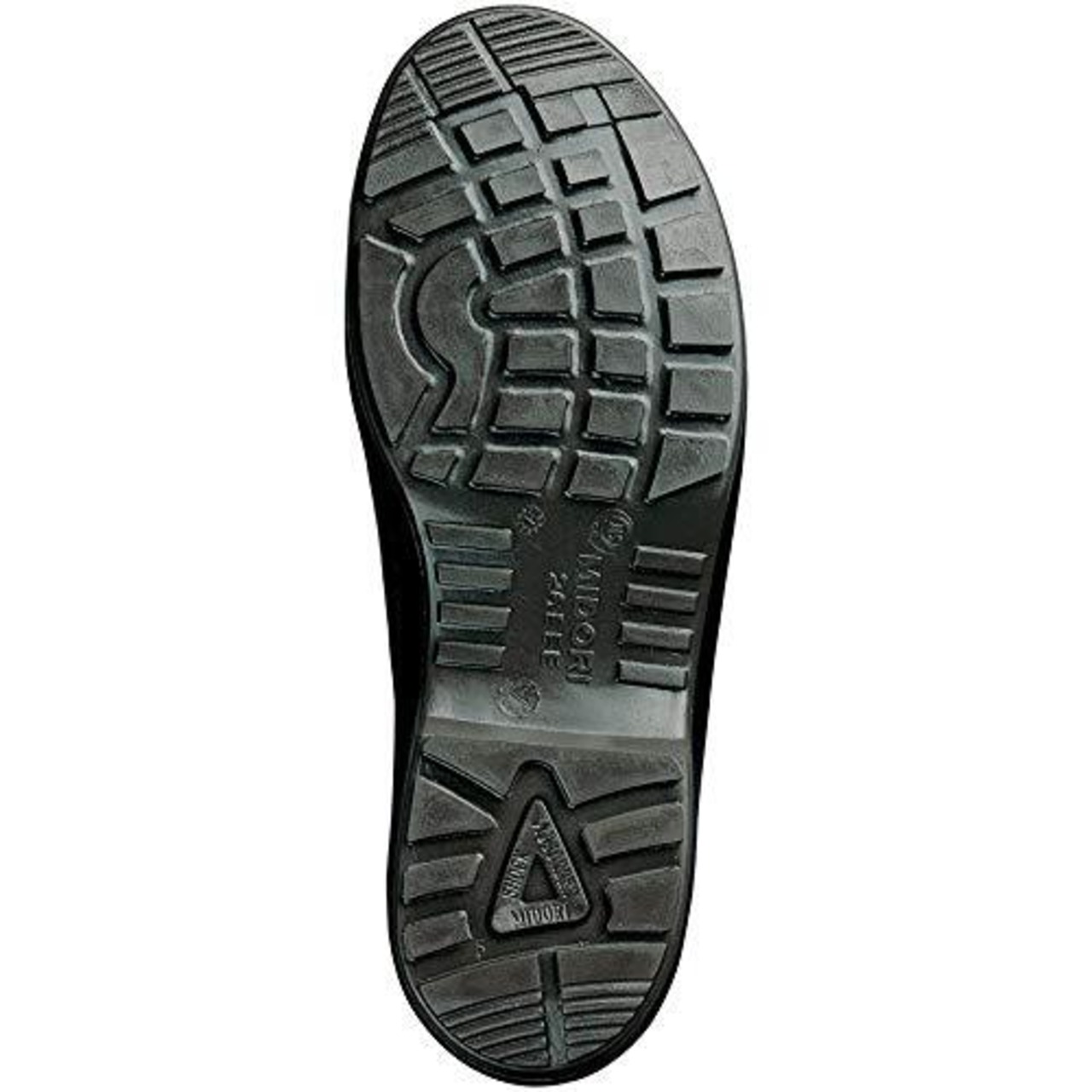 ●耐滑底+スリップサイン:油や水など滑りやすい床面での作業に適した滑りにくい靴です。靴底には目視でわかる3ヵ所のサイン付きです。