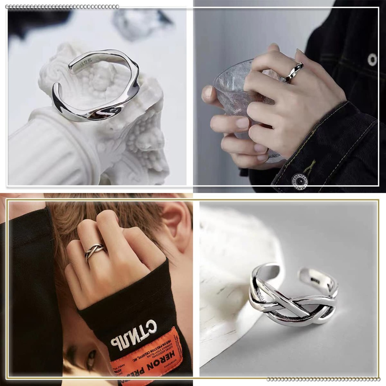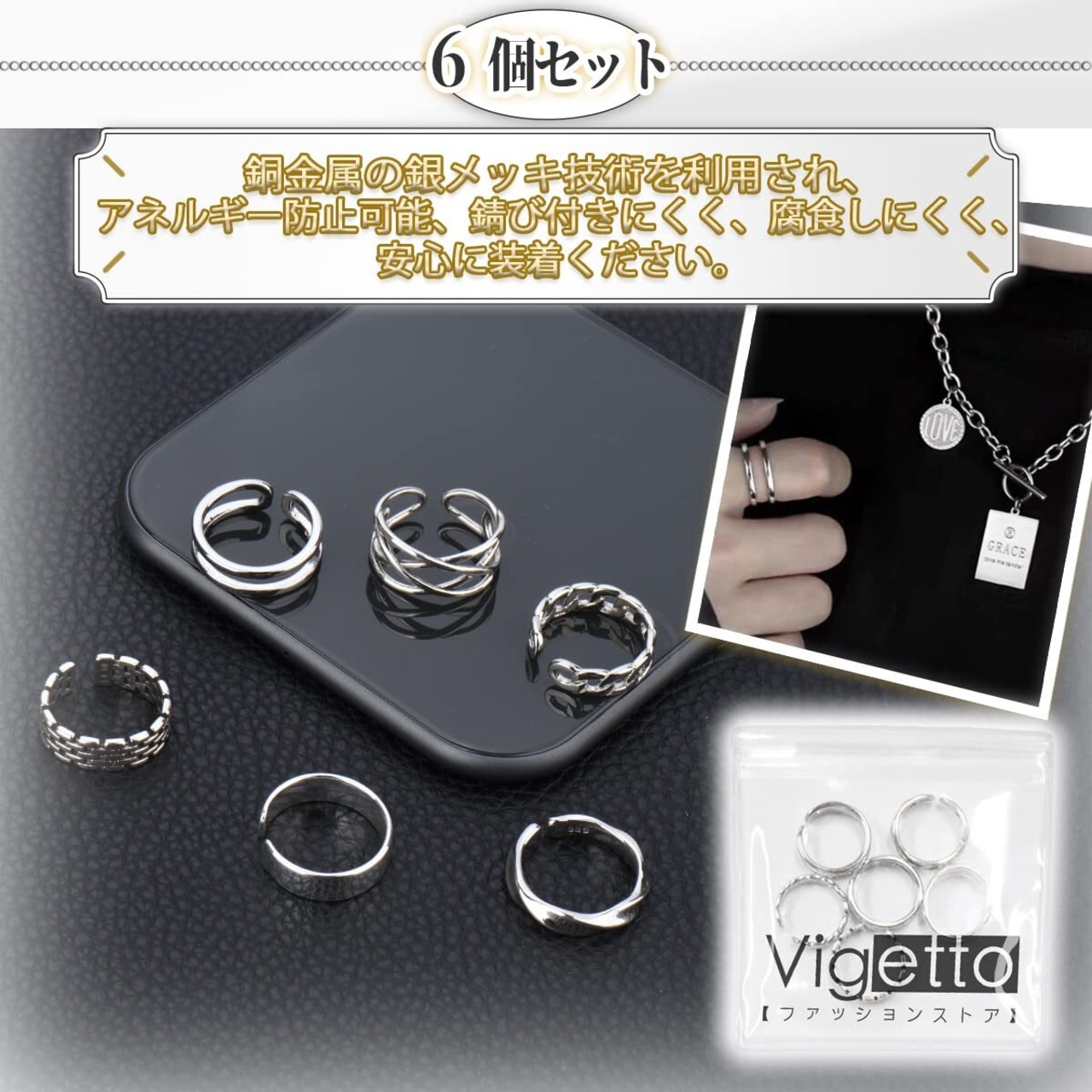 [Vigetto] 6点セット 指輪 メンズ リング アクセサリー 金属銀メッキリング ズシルバー ユニセックス おしゃれ シンプル 調節可能 人気 セット