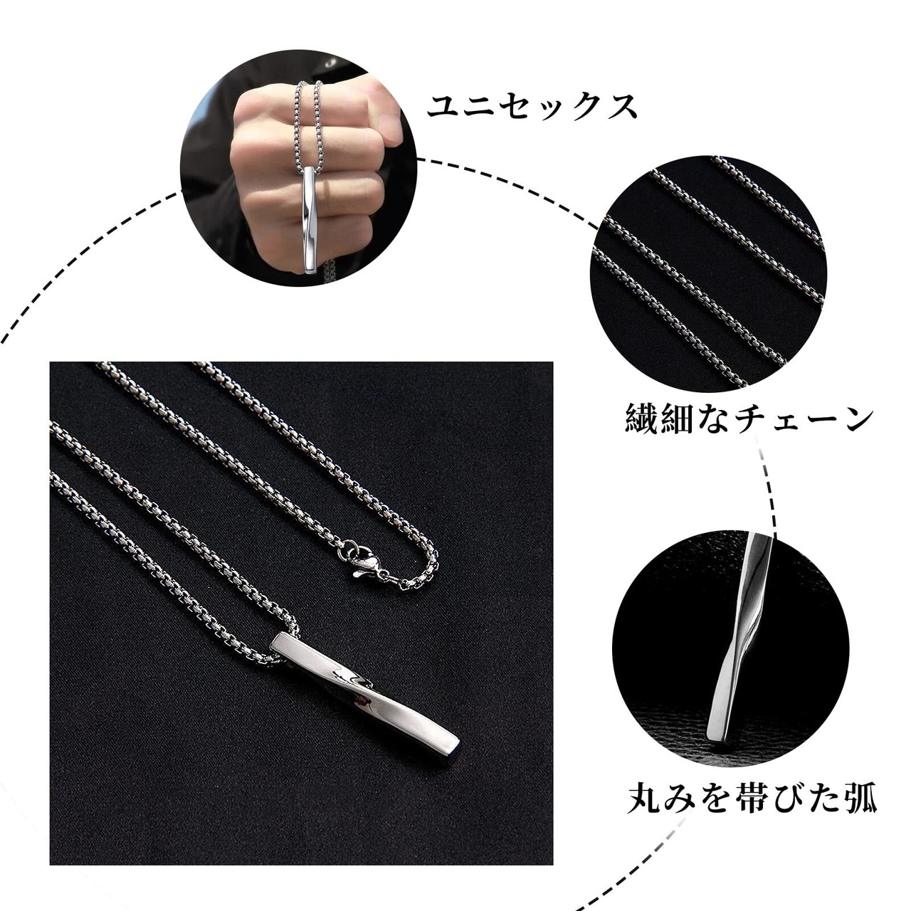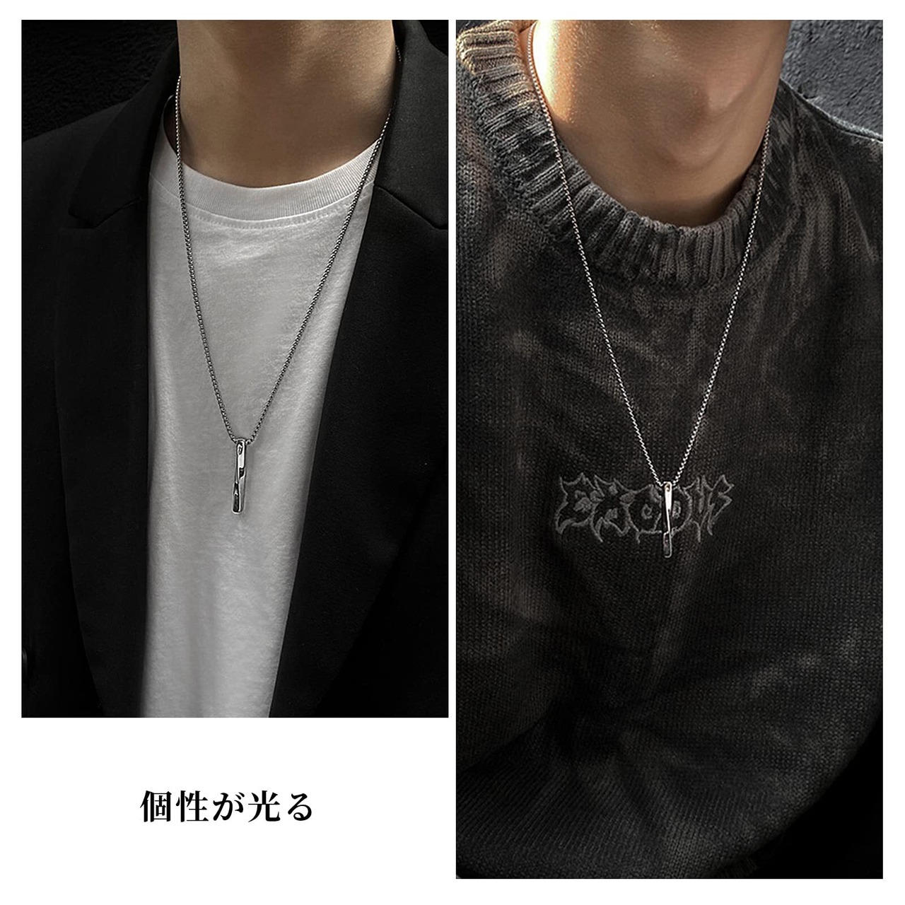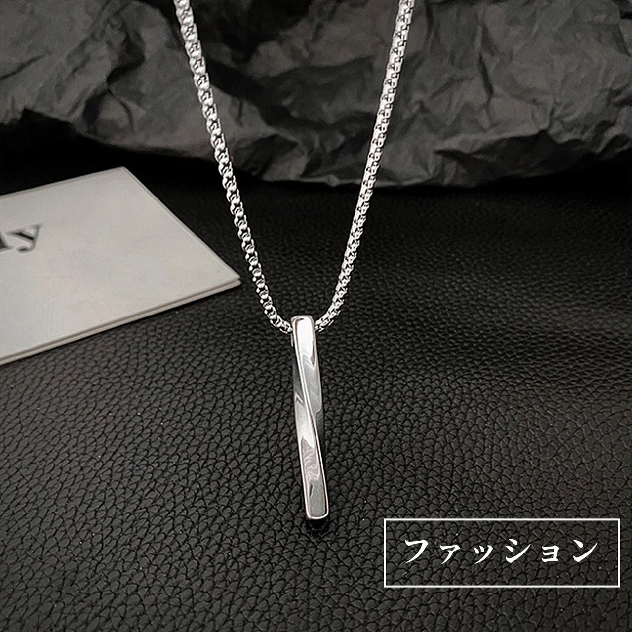 ZHEJIA ネックレス メンズ 人気 ペンダント ステンレス ネックレス シンプル ツイスト スティック ペンダント シルバー シンプル