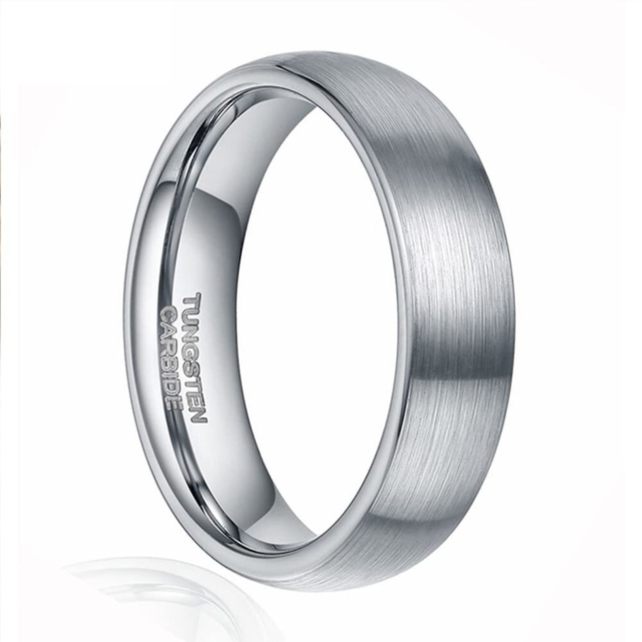【Rockyu 指輪】タングステン リング メンズ シルバー 金属アレルギー対応アクセサリー。横幅6mmのシンプルデザインで、日常使いから結婚指輪やペアリングにもおすすめです。