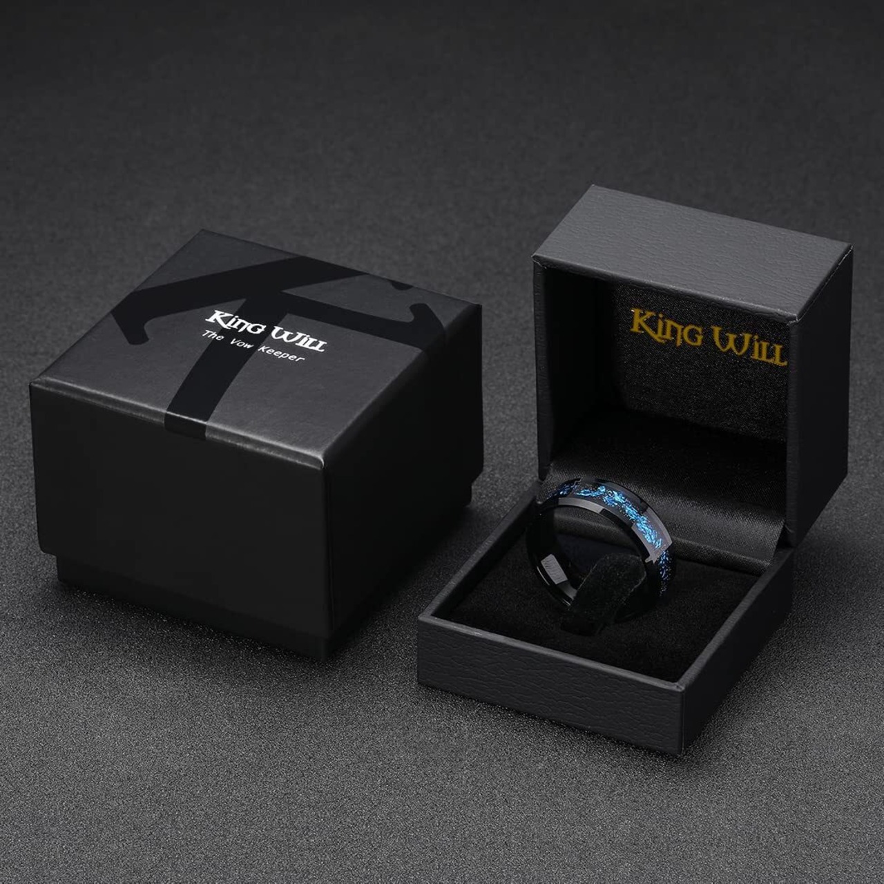 [King Will] メンズ リング タングステン 指輪 幅 8mm ブラック 結婚指輪 ブルーフォイルインレイ サイズ 16