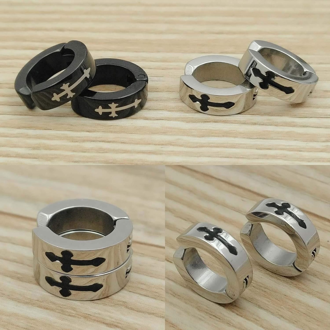 GOKEI フェイク ピアス 十字架 ピアス めんず クロス リングピアス ノンホール フープ イヤリング イヤーカフ フェイクピアス メンズ ユニセックス 【4種ペア8個セット】
