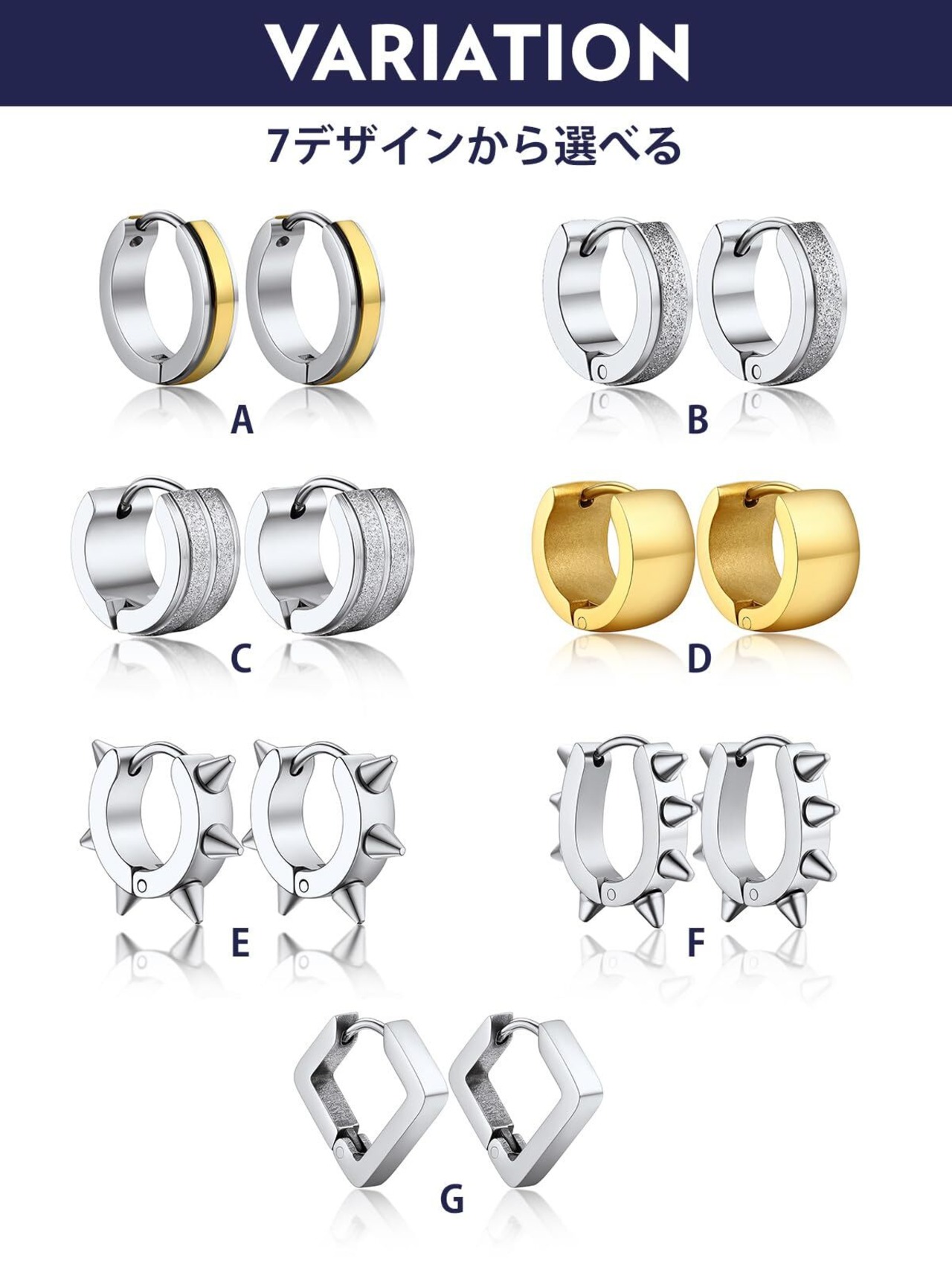 【豊富なバリエーション】リングピアスはシルバー、ゴールドとブラックの人気3色、3種類デザインをご用意しております。スタイリッシュな印象のシンプルデザインから存在感が抜群なデザインまでお好みのピアスをお選びいただけます。