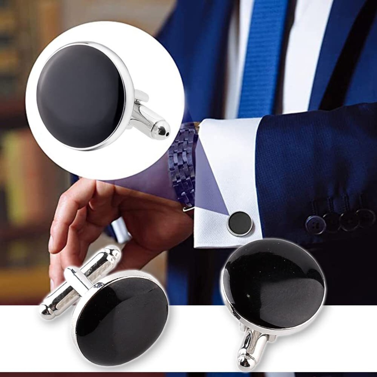 【控えめなデザイン】4ペアの手頃なカフスボタンセットです。派手すぎない黒と白。正式な場合に、シャツを着る時に専用のカフスボタンです