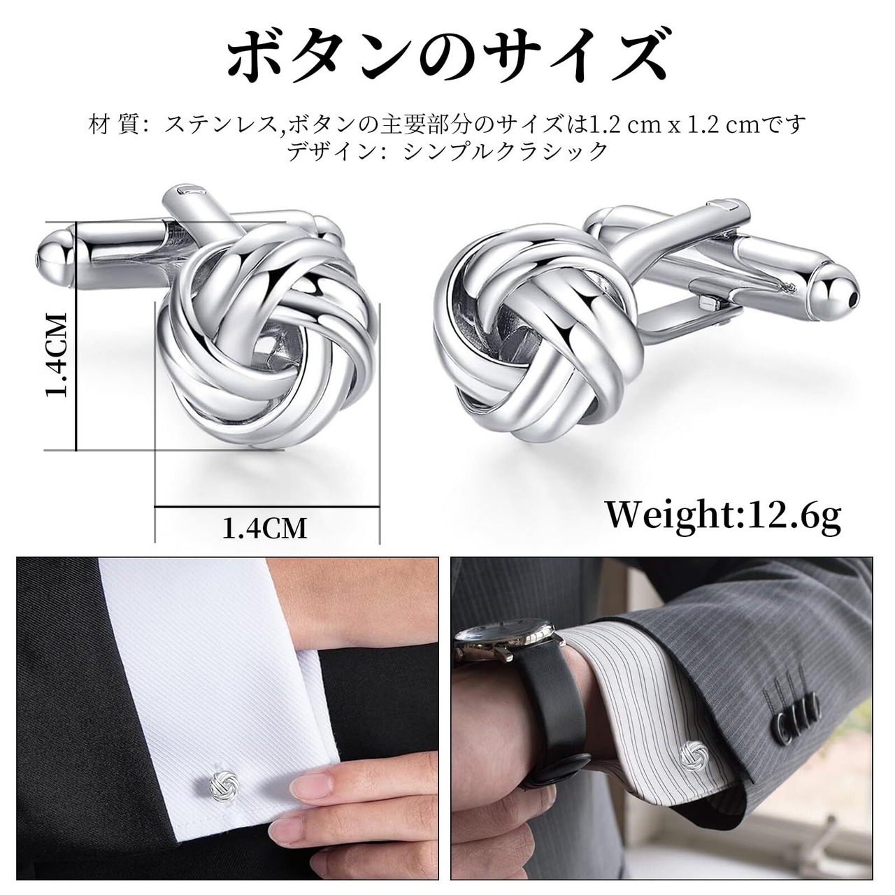 ステンレス。ボタンの主要部分のサイズは1.2 cm x 1.2 cmです。デザイン:シンプルクラシック。ご利用画面の発色具合により、色味や素材感が異なる場合がございます。予めご了承ください。