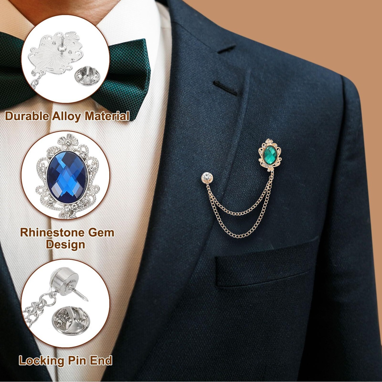 PATIKIL 宝石ハンギングチェーンブローチピン ラインストーンメンズジェムブローチスーツピンラ ペルピンウィメンズクローズドレスブーケコートハットバッグ