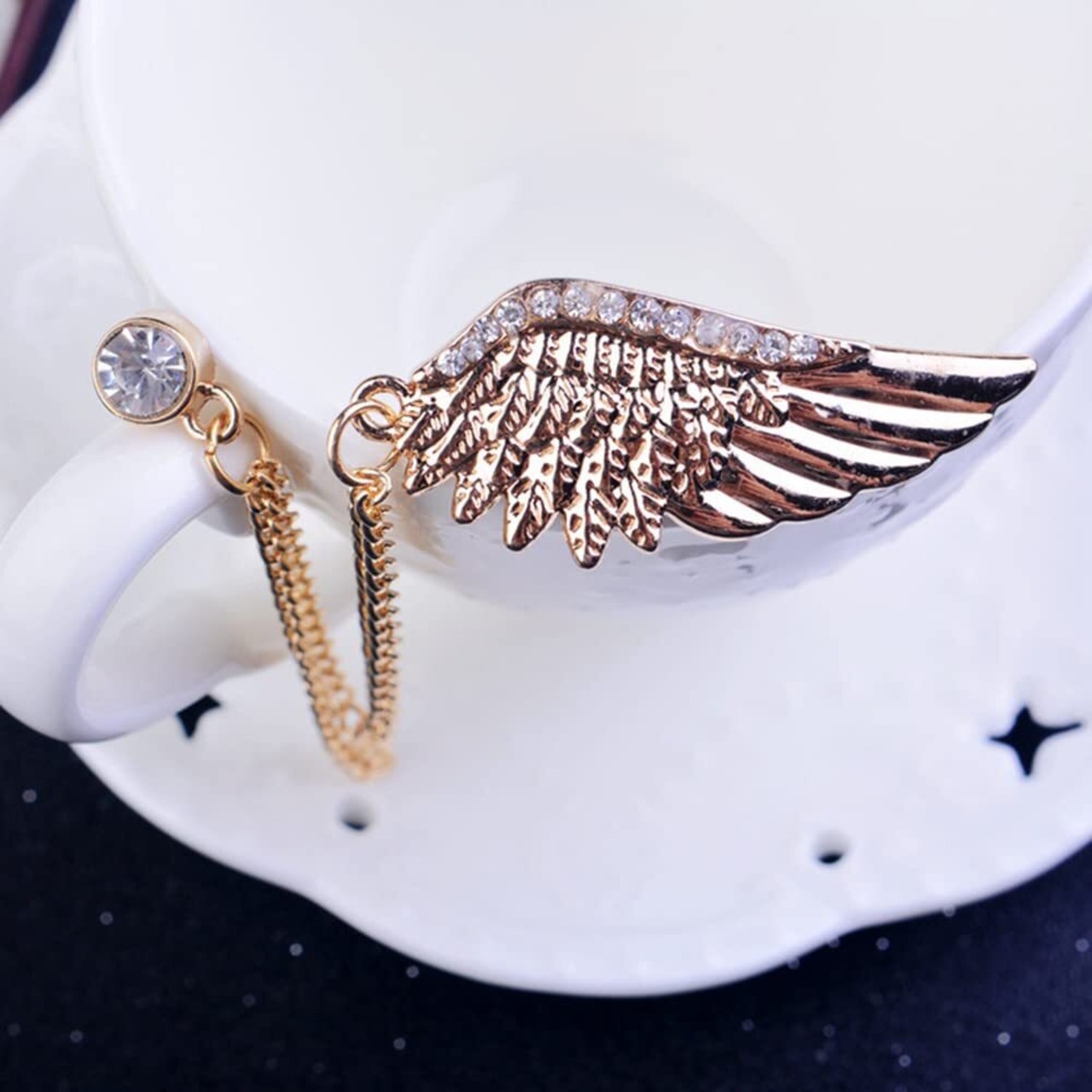 WOWTAC ラペルピン ブローチ 翼 羽根 ゴールド シルバー チェーン アクセサリー ピンバッジ スーツ 結婚式 天使