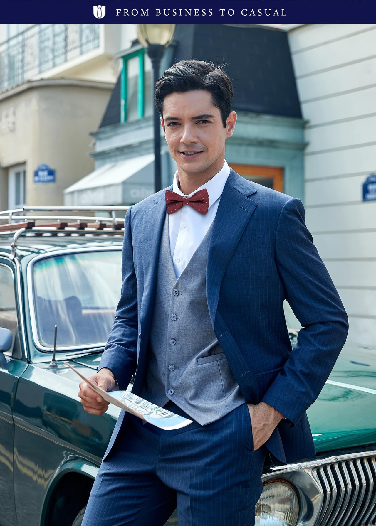 【パッケージ情報】ポリエステルとシルク製蝶ネクタイ:横12cm X 縦 7cm、首回りは32cm~52cm調節可能 ┃ チーフ:31cm X 31cm。