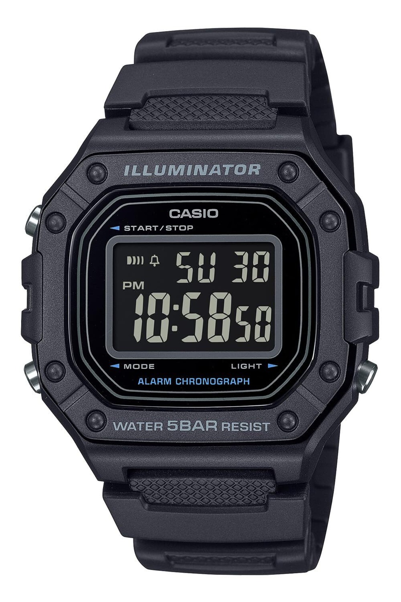 スクエアフェイスと時刻の視認性の高さが特徴のW-218シリーズです。定番アイテムとなるデザインと頼れる機能が、アクティブな毎日をサポートします。5気圧防水、暗闇でも見やすいLEDバックライト、ストップウオッチ、アラーム、カレンダー等、デジタルウオッチならではの機能を備えています。