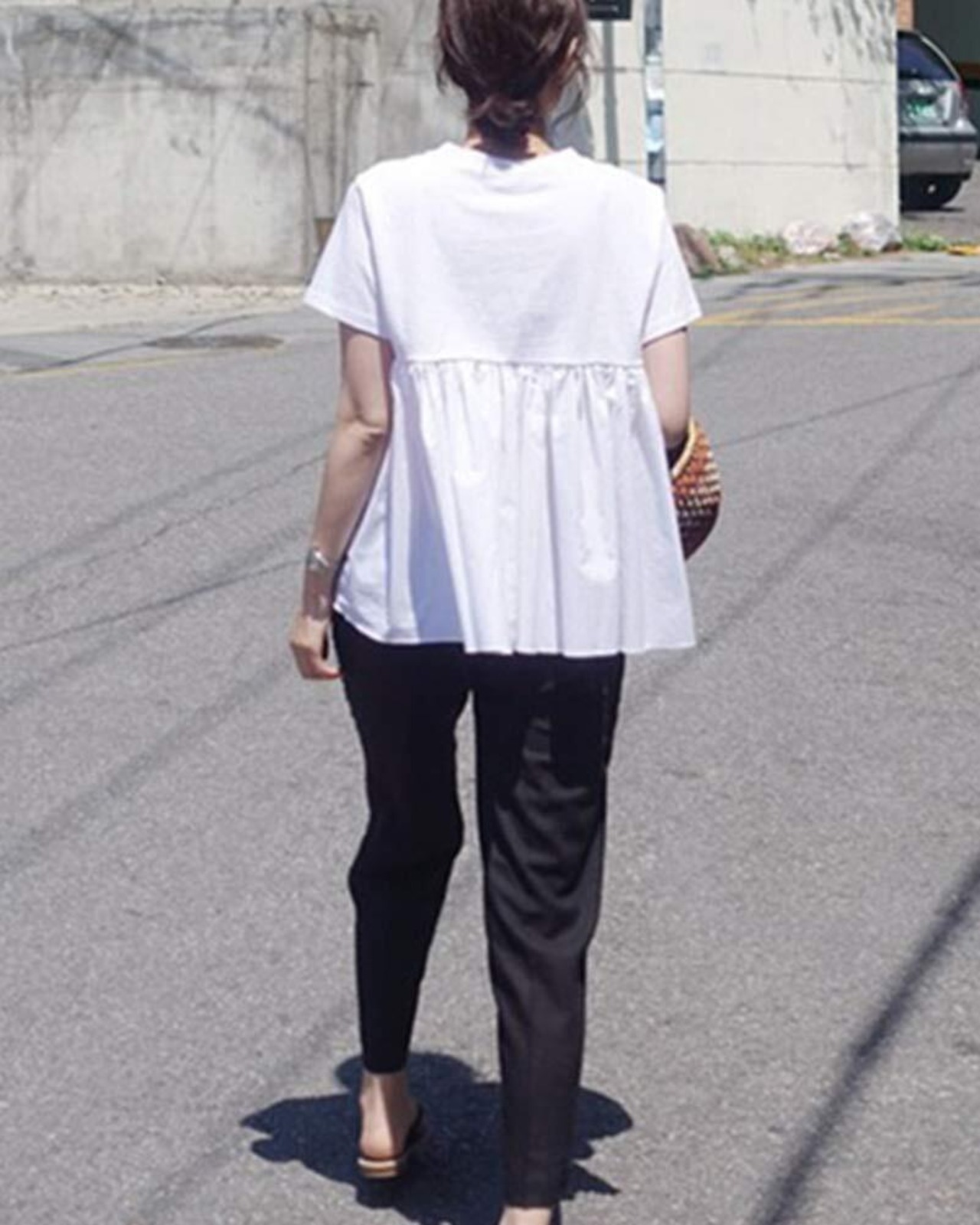 [ASARANS] Tシャツ 半袖 レディース バックフリル バックギャザー トップス カットソー 夏 ラウンドネック かわいい 無地