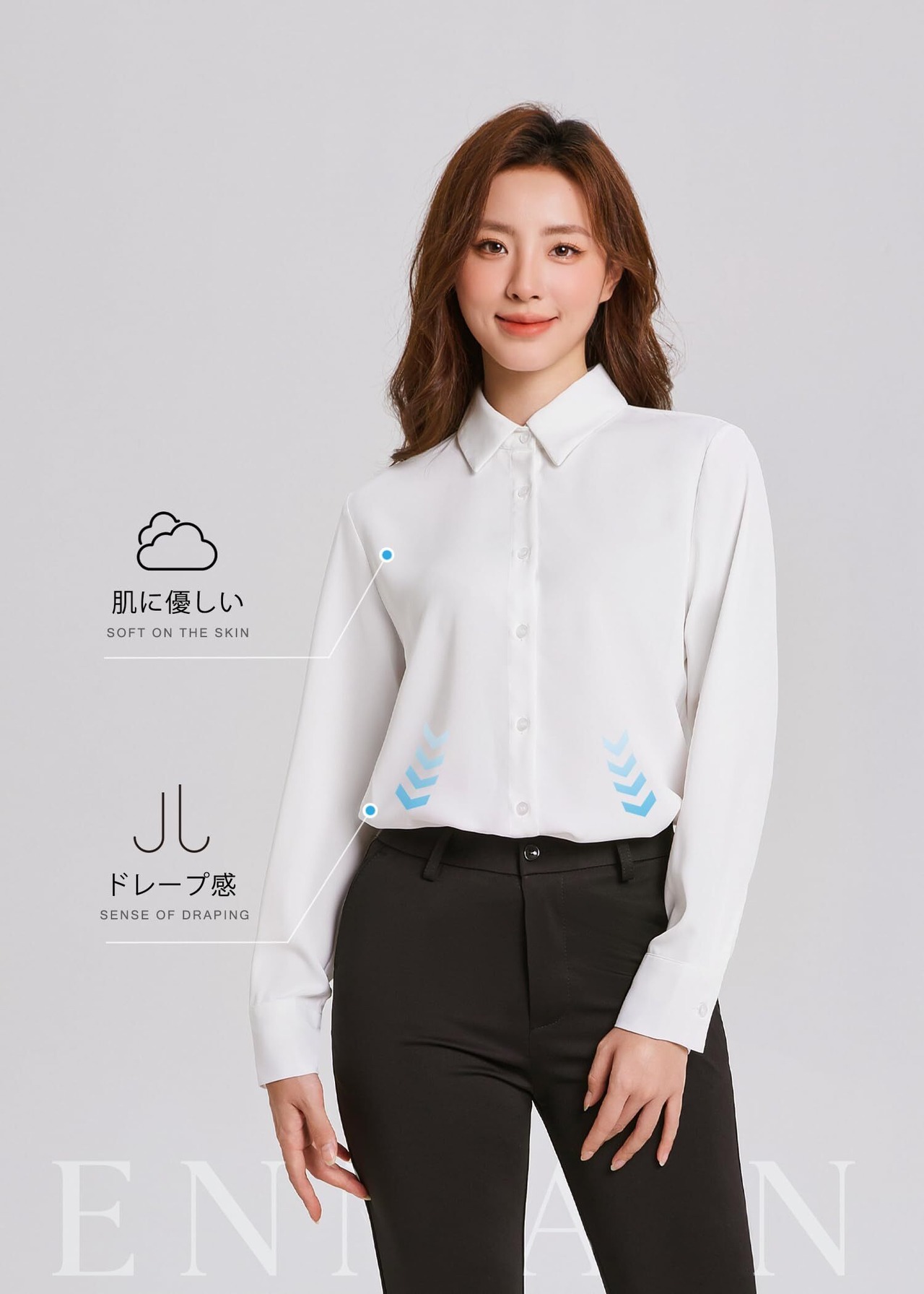 [Enmain] 新登場!301S「シフォン」ドレープ感 柔らかい 快適 UV防止 UPF50+ オフィス レディース 通勤 事務服 就活 きれいめ かわいい ワイシャツ 長袖 ゆったり/80番手/192g