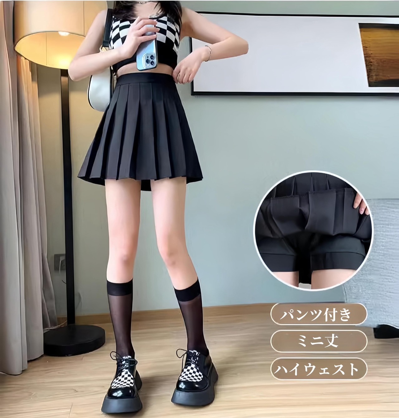 [KOEKOI] プリーツスカート ミニ スカート レディース ミニ 美脚 セクシースカート 通勤 インナー パンツ付き オフィス OL 制服 大きいサイズ Aライン 春 秋 夏 プリーツ 超ミニ 美尻 パンツ付きスカート ハイウエスト