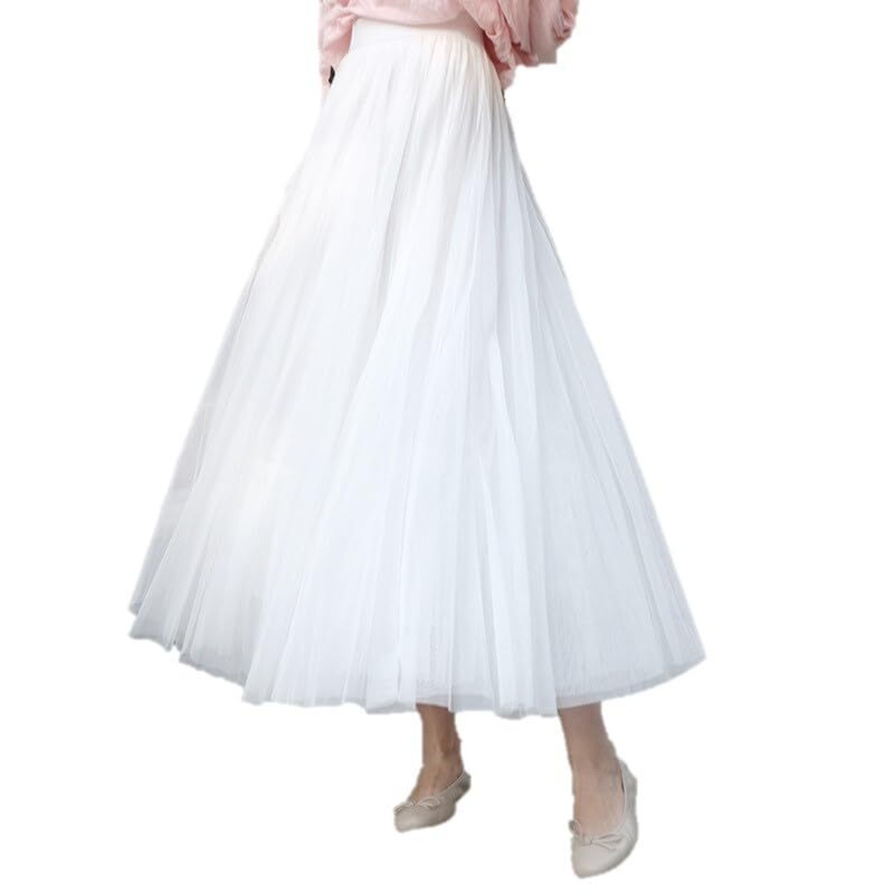 [Bobo & Hanhan] レディース ロング チュールスカート マキシ丈 おしゃれ ボトムス 体型カバー 大人 可愛い エレガント 裏地付き ウエストゴム 通勤 普段着