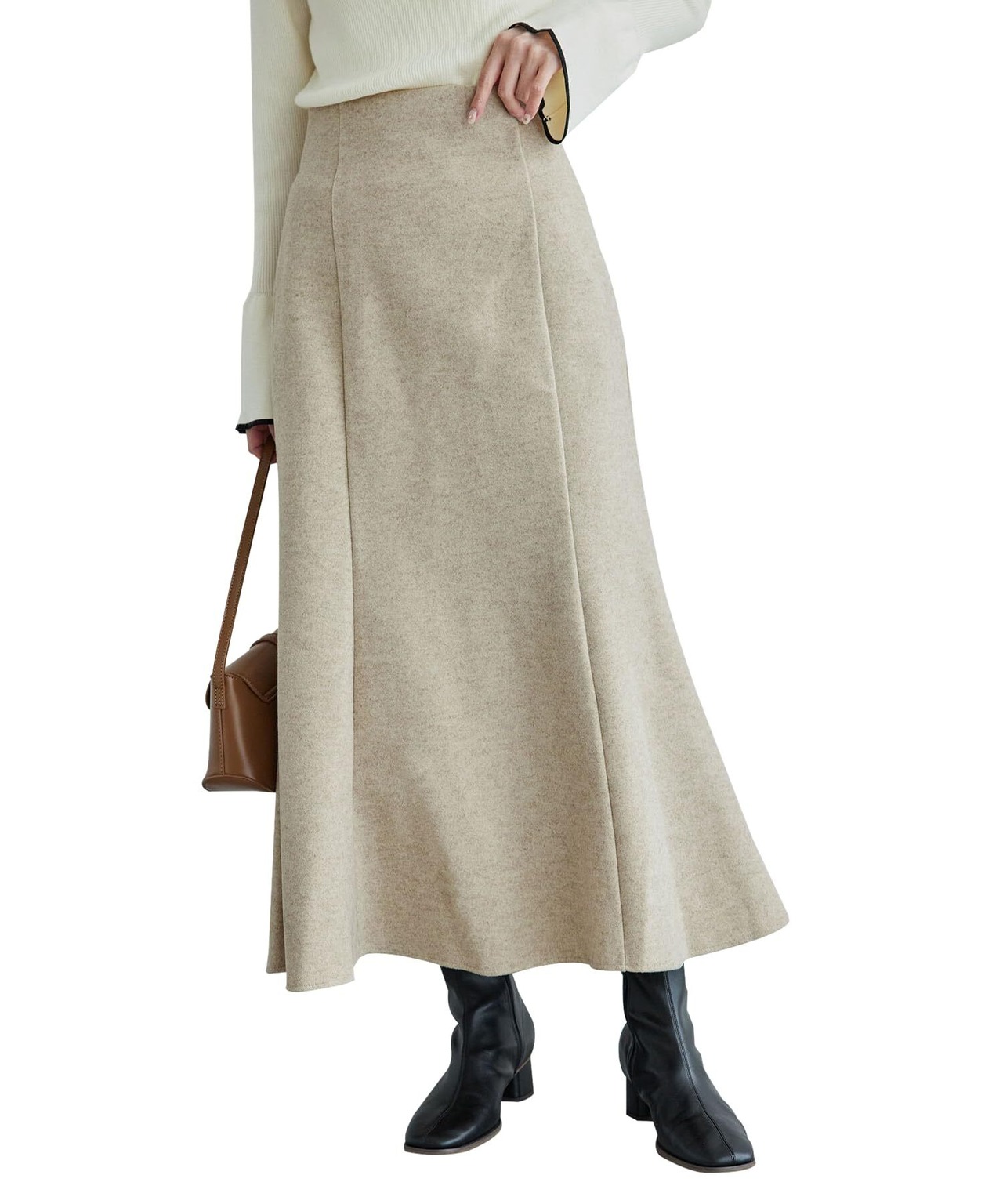 デザイン・シルエット : 切り替えデザインで、メリハリのあるシルエットバランスに仕上げたマーメイドスカート。ウエストは後ろ側をシャーリングにしてフィット感をプラスしました。