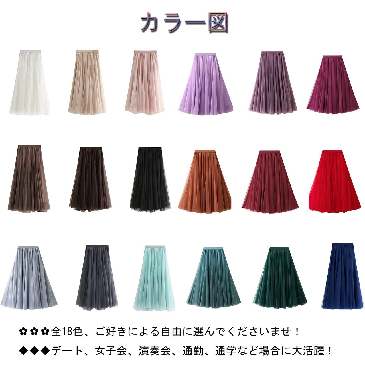 [Blostirno] チュールスカート レディース プリーツ スカート レディース ロング Aライン ボトムス マキシ丈 ウエストゴム 裏地付き おしゃれ