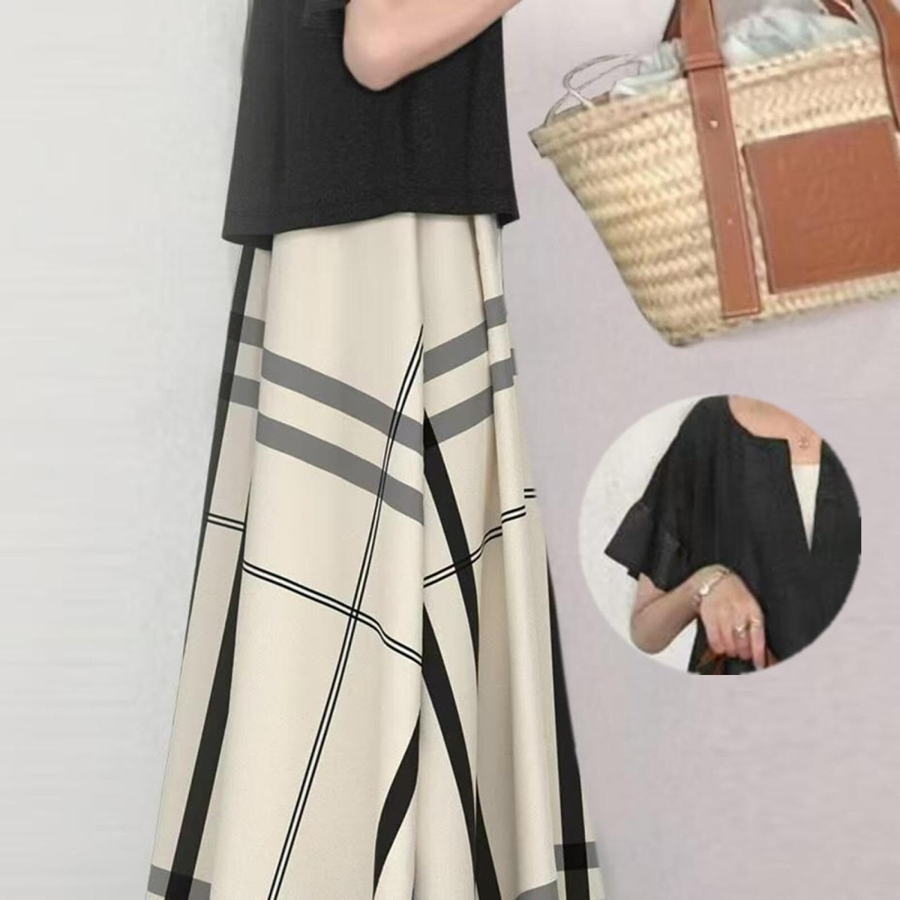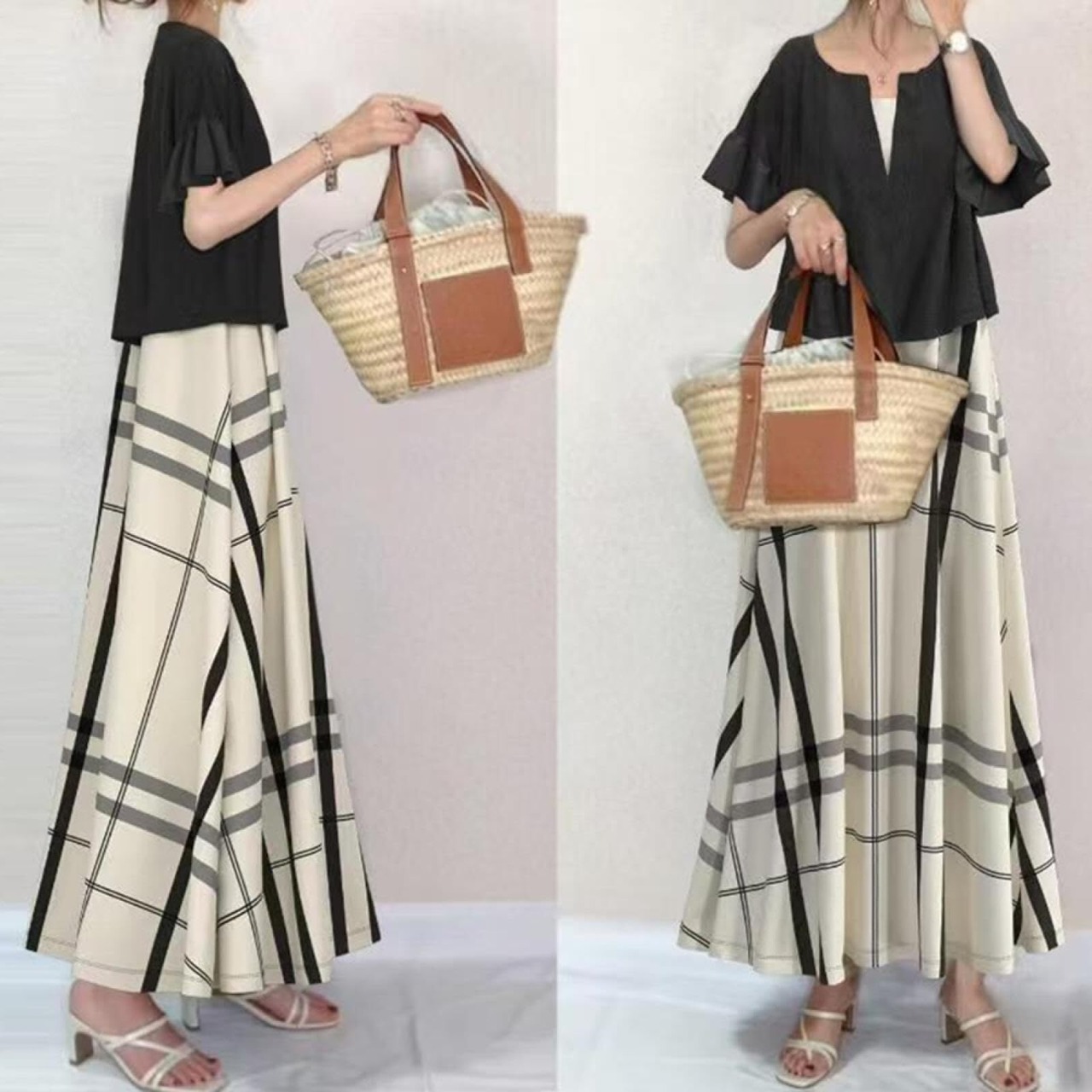1.完璧な夏:この2つのセットには、ゆったりとしたフレアの上着とチェック柄の長いワンピースが含まれています。単独で着ても、カジュアルなアイテムと合わせても、日常着をミックスするのが楽しくなります。これは2点セットです。クールで快適な素材で作られており、スタイリッシュで体型をカバーしています。