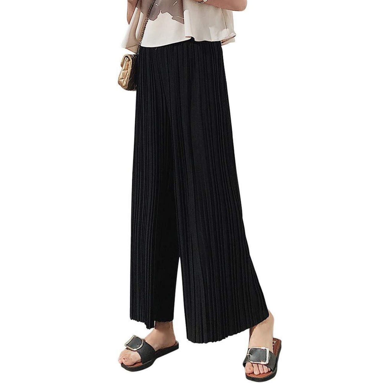 【ファンション感満点】美ドレープが魅力のスタイリング。このプリーツガチョウパンツをプラスするだけでトレンド感なスタイルに。 スカートのようでパンツだから歩きやすく、軽やかに揺れるスカートが繊細で女性らしい印象を与えます。
