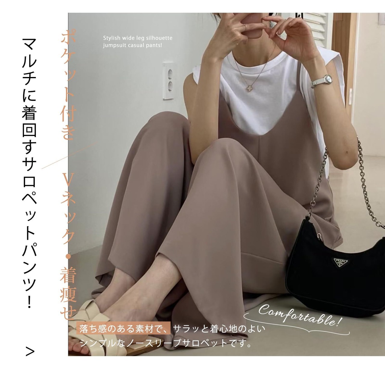 [Leadamon-oee] オールインワン レディース サロペット パンツ Vネック ワイドパンツ オーバーオール ポケット付き ズボン 大きいサイズ ボトムス 体型カバー 可愛い 通勤 春 夏