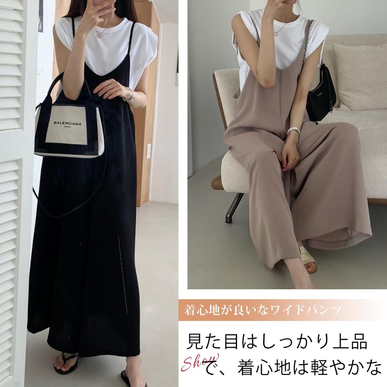 【体のラインを気にしないワイドパンツ】トレンドのたっぷりとしたワイドシルエットのワイドパンツの登場します。サイズ:F:着丈(肩紐を含む)132cm、バスト100cm、ウエスト104cm 。計測に付きましては手測りとなりますので 若干の誤差はご了承ください。オールシーズン着まわせるサロペットで、太ももをカバーする脚長効果もあります。