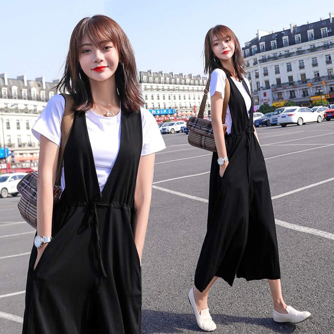 [TAITENG] サロペット レディース オールインワン ワイドパンツ 無地 オーバーオール ゆったり 体型カバー クロップドパンツ 大きいサイズ 夏服 ファッション 通勤