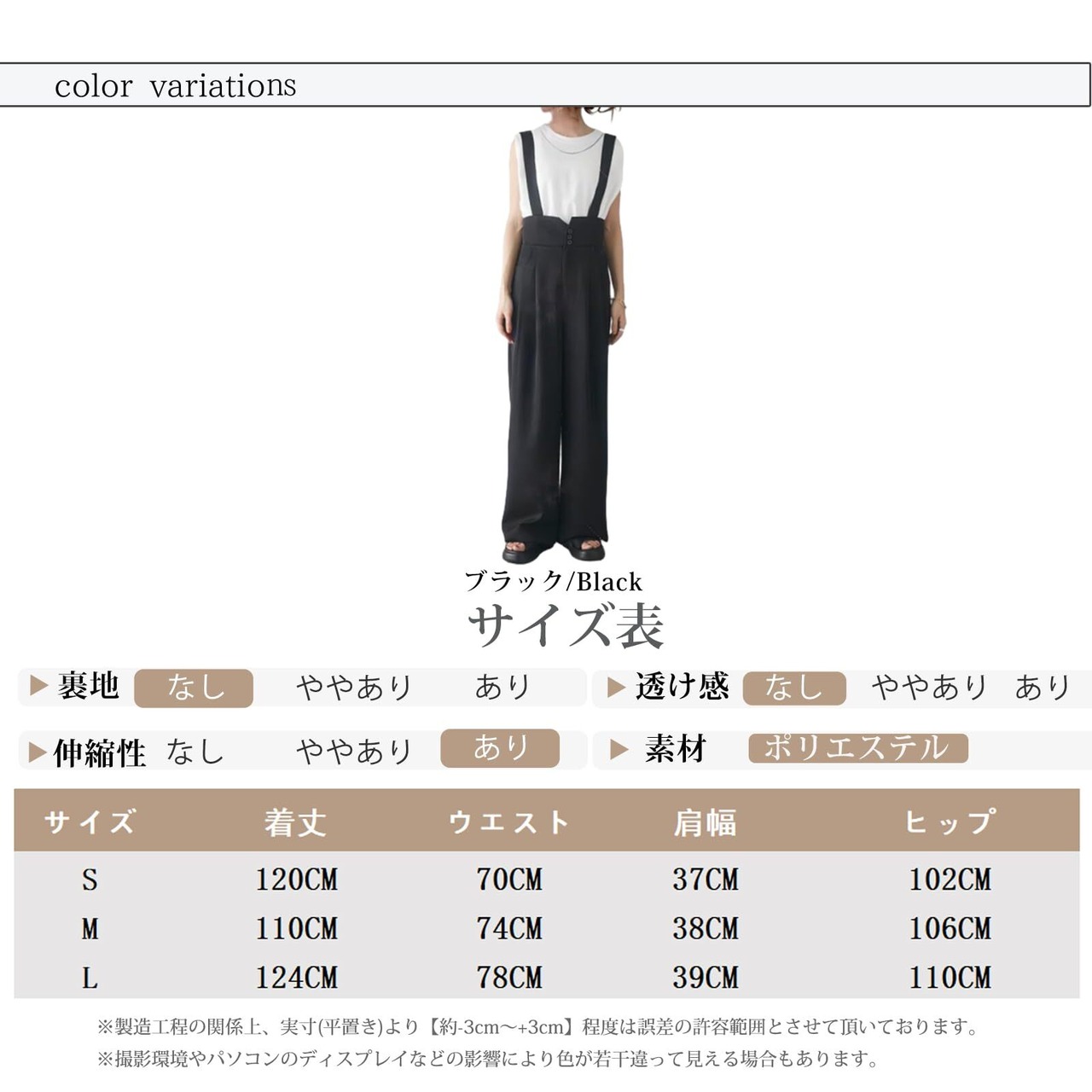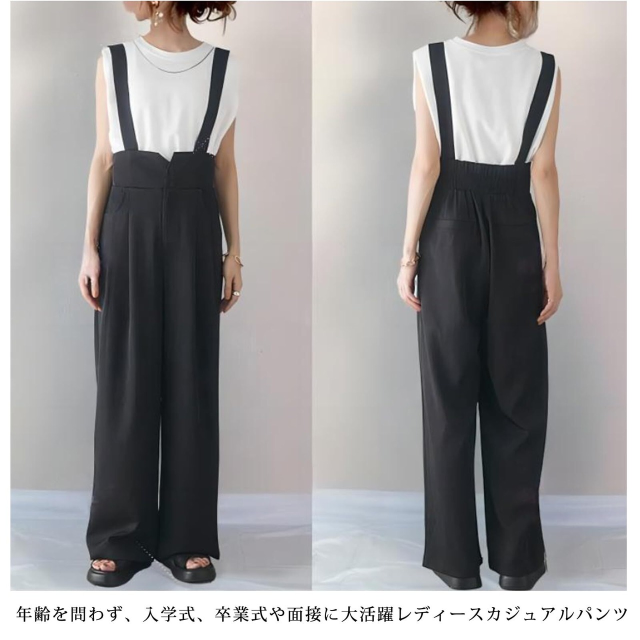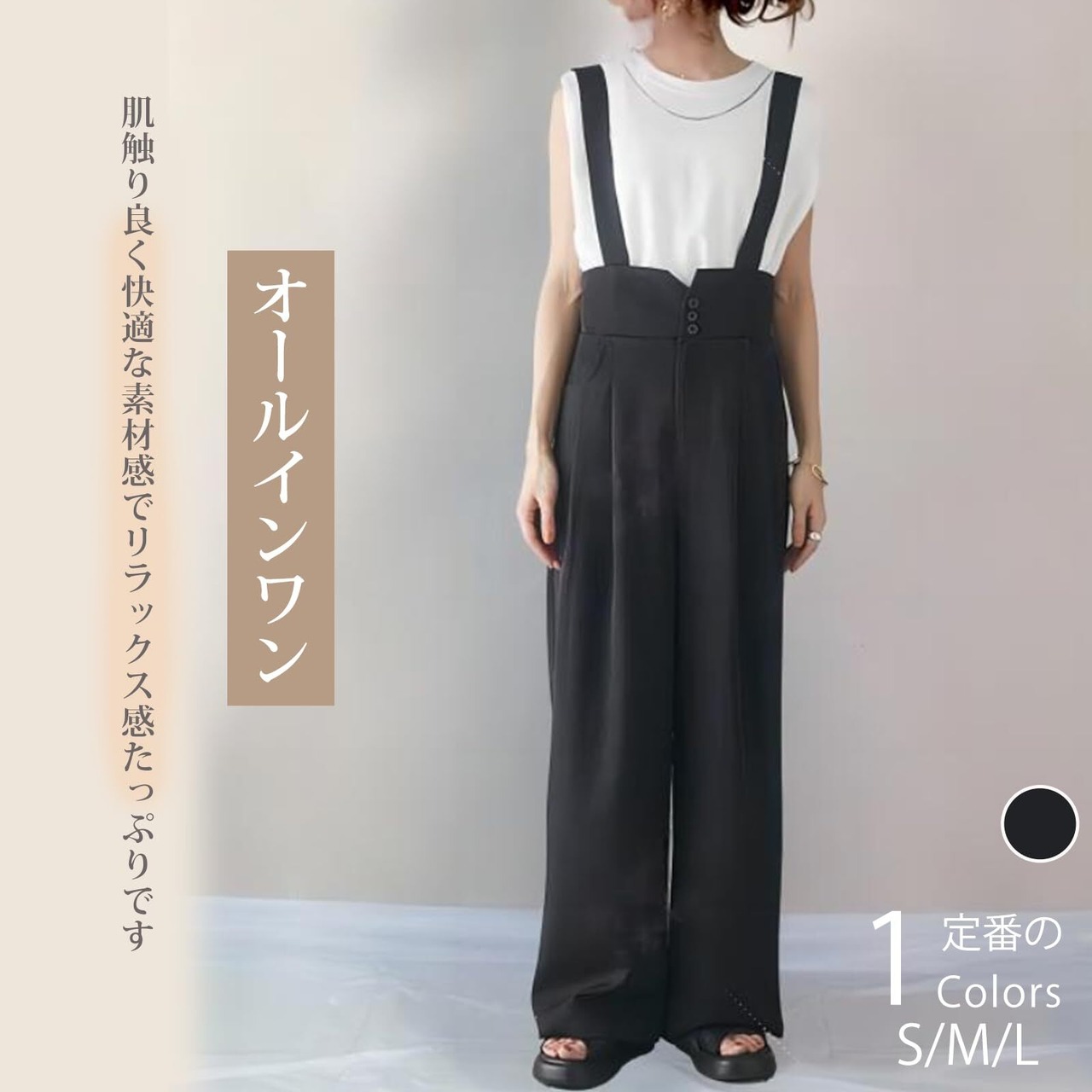 こなれ感のあるラフなシルエットで、楽ちんだけどしっかりオシャレを演出してくれるワイドシルエット。ワイドタイプですがスッキリとして見え、体型カバーにも役立ちます。シンプルなサロペットオールインワンです。ノースリーブがベーシックなデザインなので、オフィスからカジュアルまで 幅広いシーンで活躍してくれます!