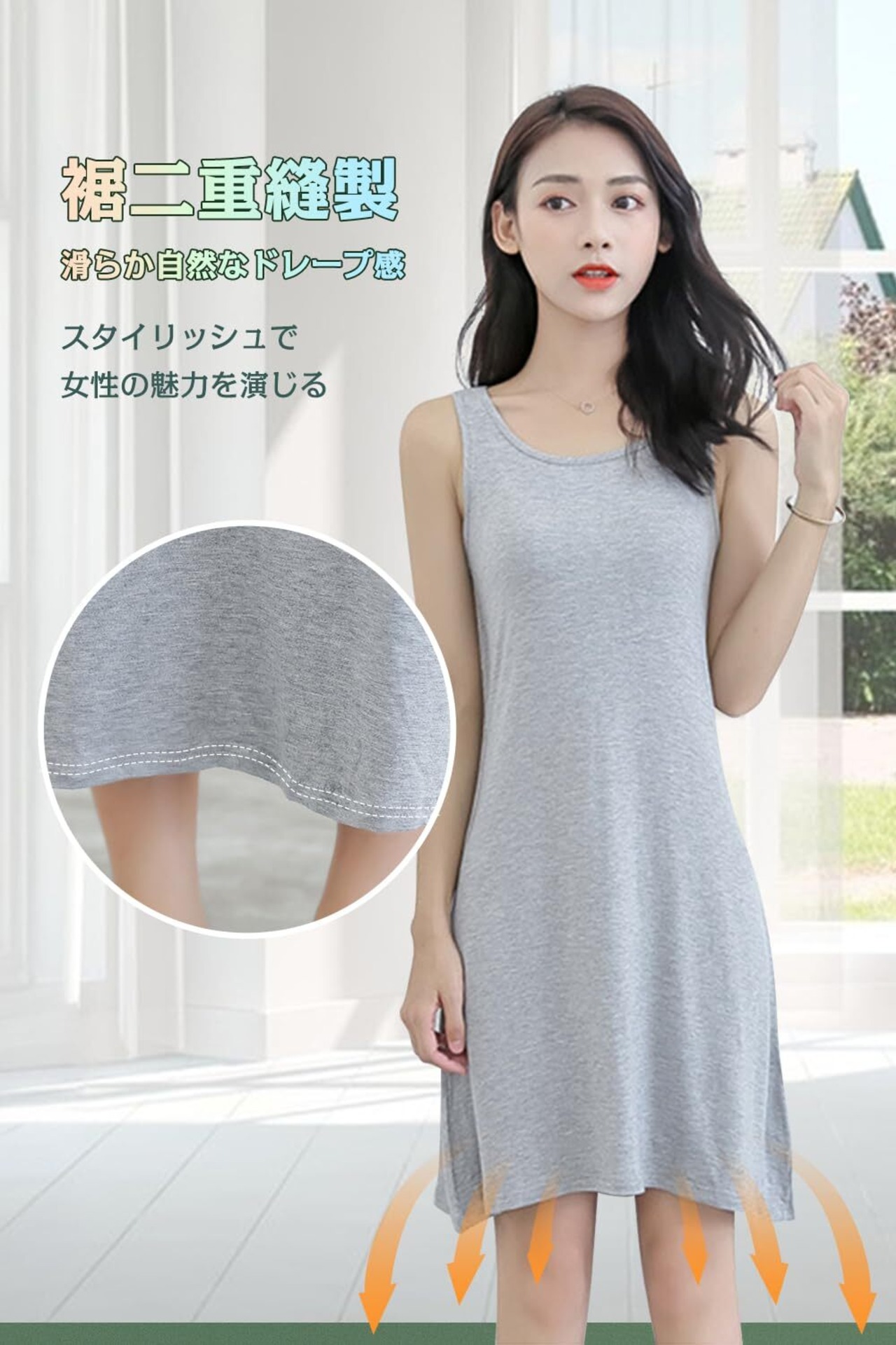 [WindTour] ペチコート レディース Uネック 透け防止 モダール スリップ キャミワンピース インナーワンピース 重ね着 タンクワンピース ロングワンピース キャミソール ロングタンクトップ 部屋着 ハーフスリップ ロングスリップ 四季適用