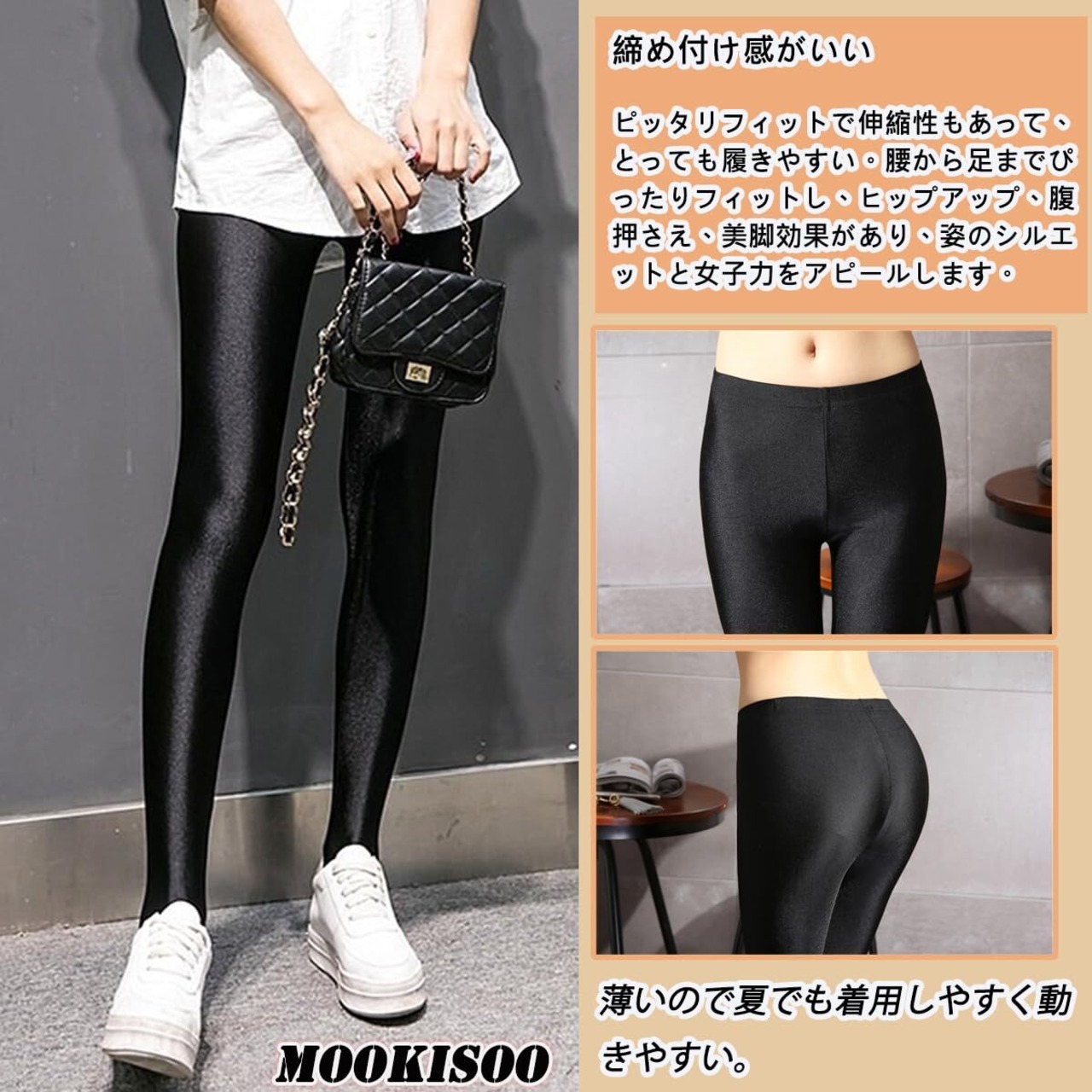 [MOOKISOO] 薄手 トレンカ レギンス レディース きつすぎず 涼感 光沢 UV加工 サラサラ快適 スパッツ ロングパンツ スキニーパンツ 吸水速乾 美脚