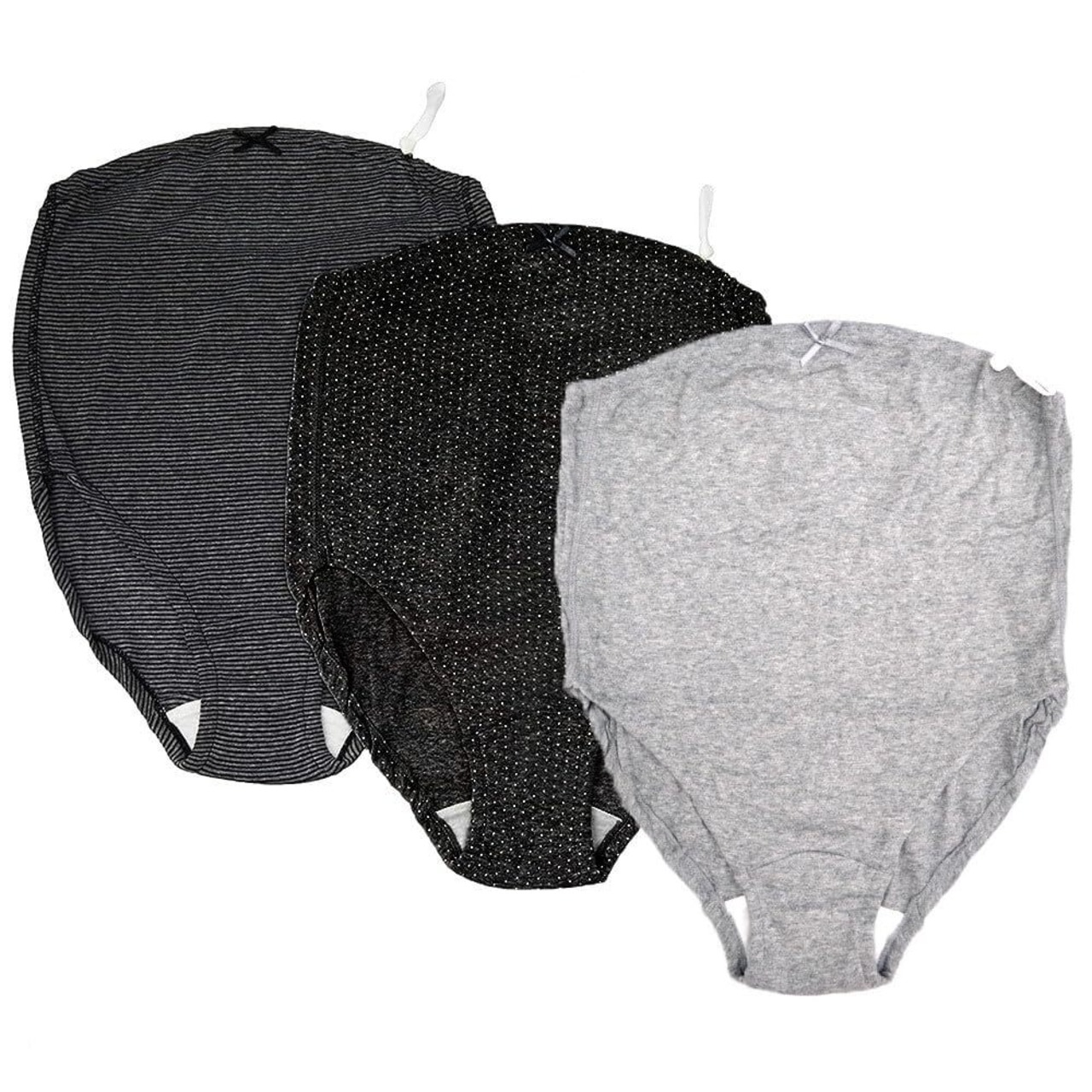 ローズマダム 肌にやさしい マタニティショーツ 綿100%でノンストレスの履き心地 ウエストゴム調整 お得な3枚組 7309 D-ブラックドット、グレー無地、ブラックボーダー L-LL