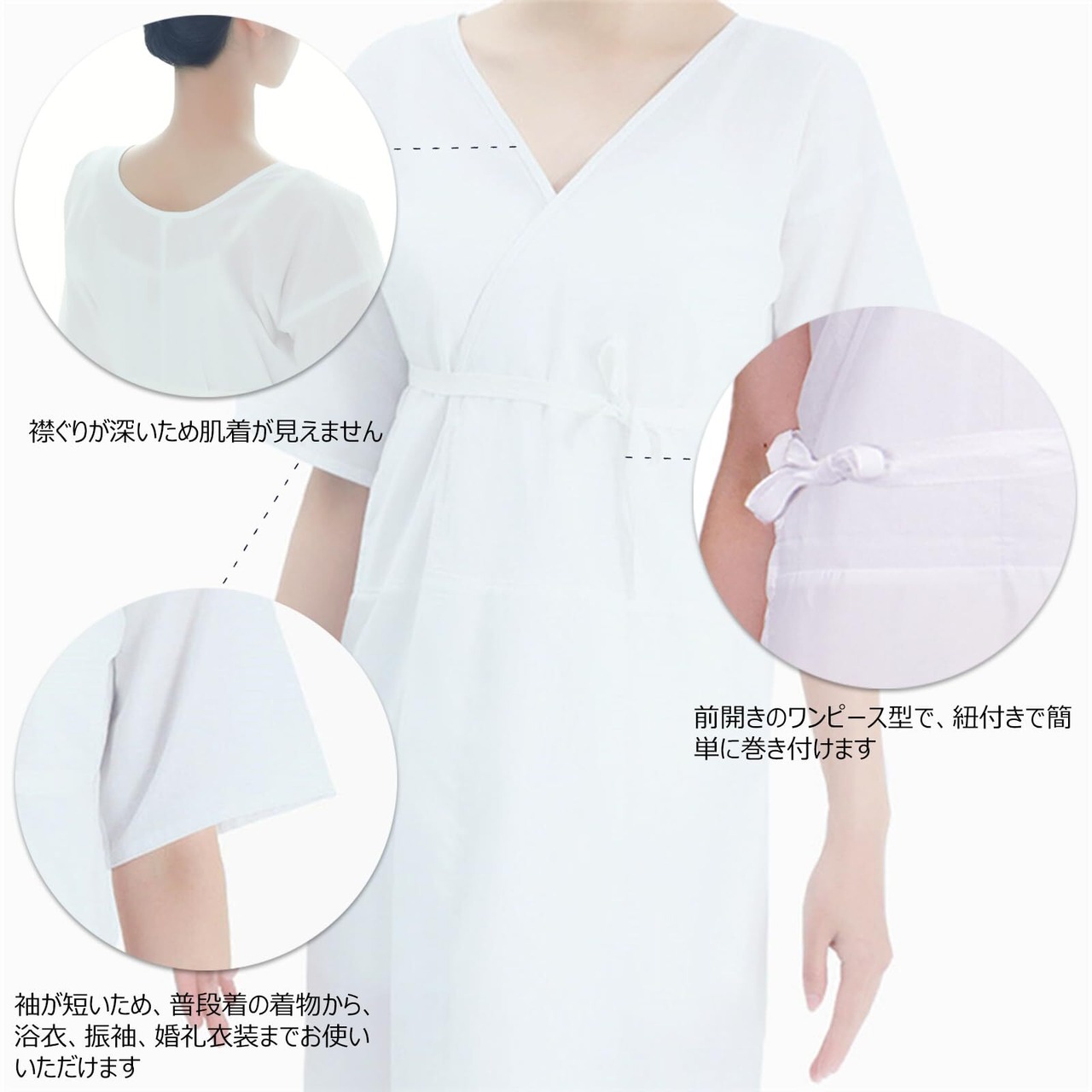 【幅広く活躍】 普段着の着物から、浴衣、振袖、婚礼衣装まで、すべての和装にお使いいただけます。前開きのシンプルなワンピース型で、紐付きで簡単に着られます。