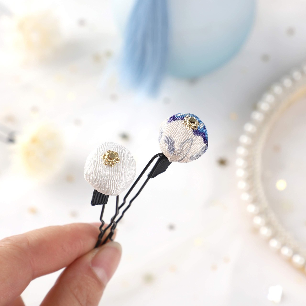 繊細な和風髪飾りの9点セットです。花の色合いが素敵で存在感があります。Uピンの先が丸くなっているので頭皮に優しい。