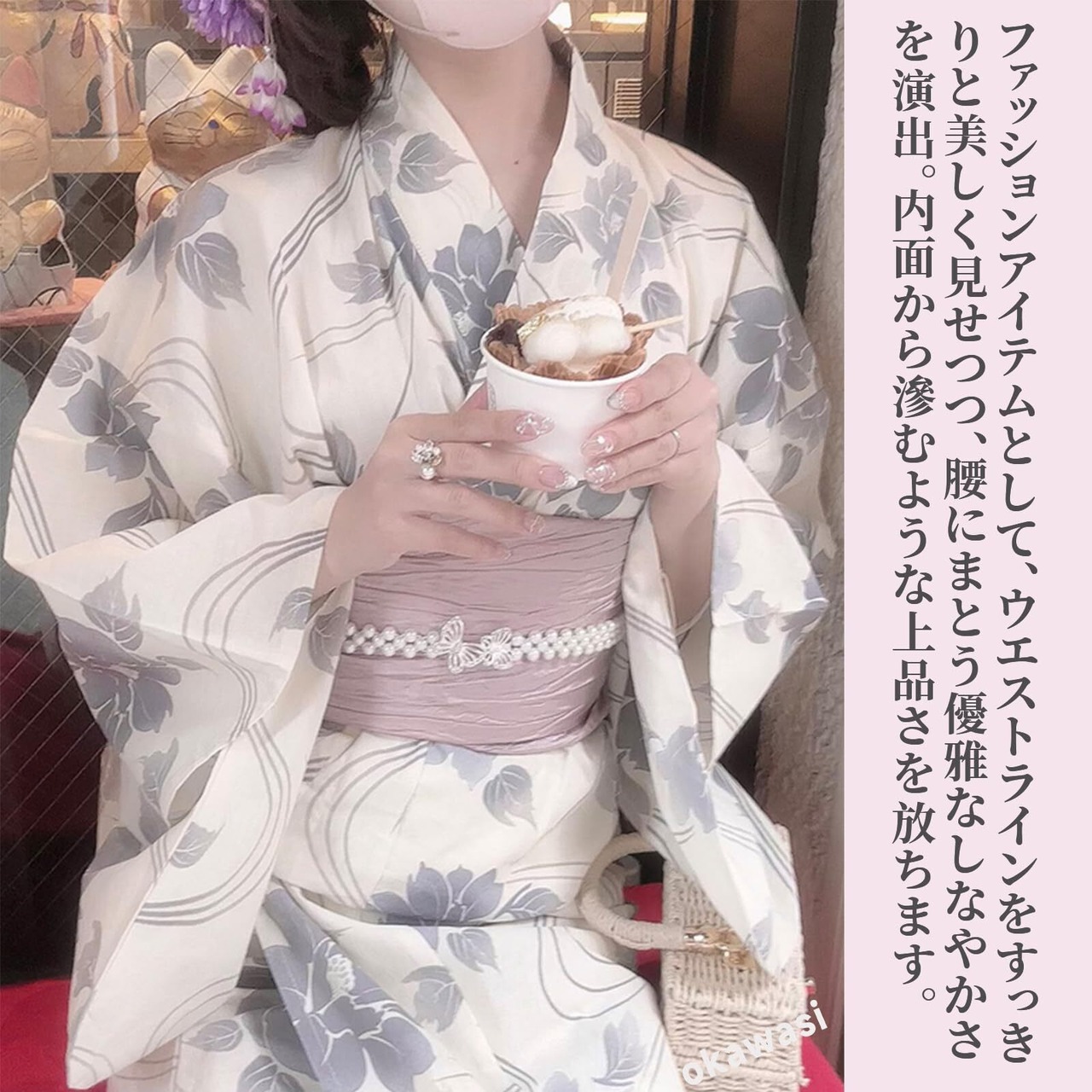【上品なパールの輝きで装いを華やかに】帯締め全体に施された、艶やかで上質なパールが、浴衣や着物姿を一層エレガントに引き立てます。卒業式や結婚式、七五三などのお祝いの場で、一際華やかな印象に。