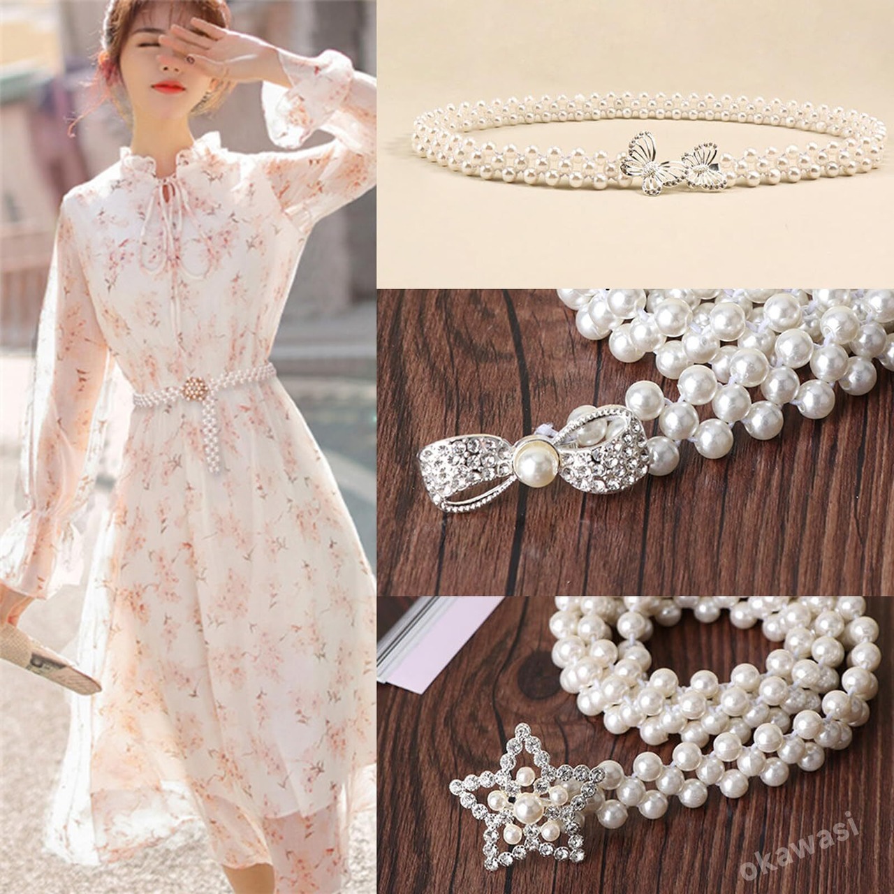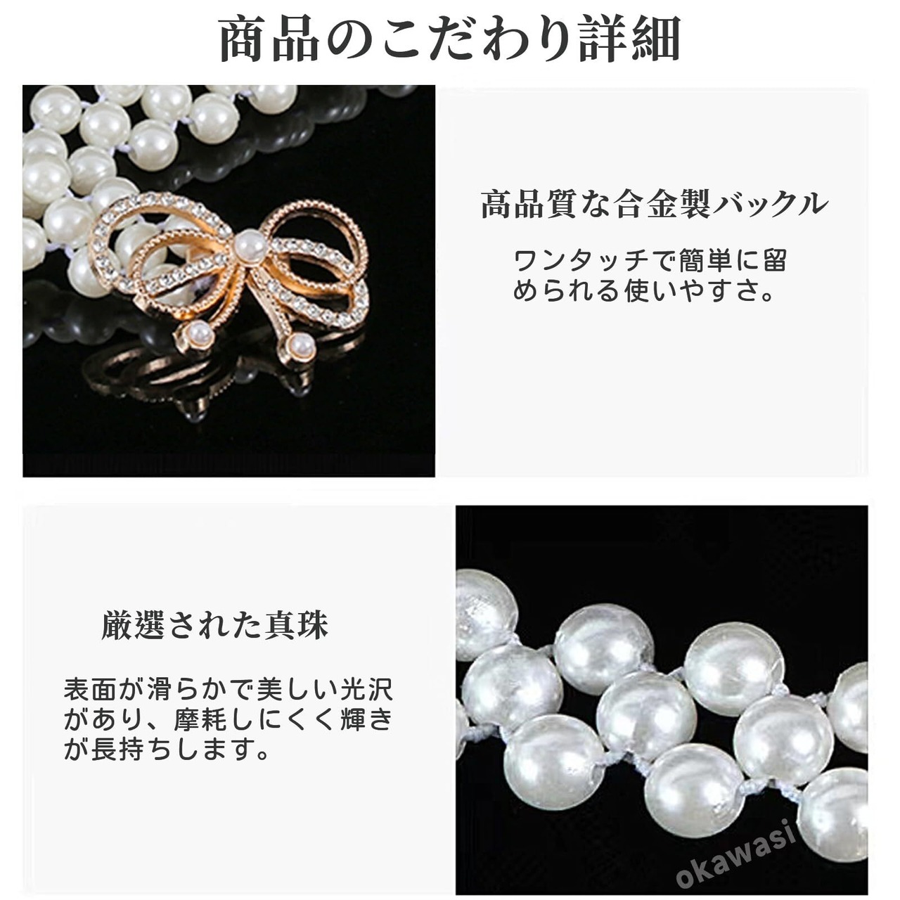 OKAWASI パール 帯締め 浴衣 着物用 飾り紐 豪華でかわいい 和風小物 女性用 結婚式 成人式 七五三 卒業式に 67cm 伸縮タイプ 着脱簡単