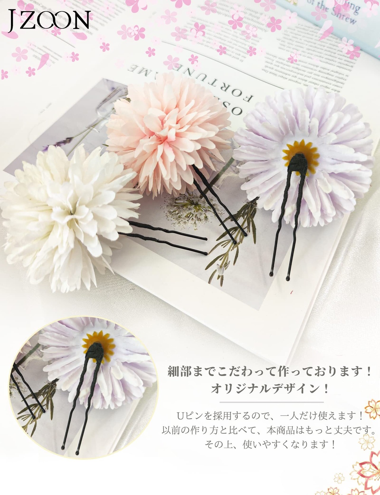 【JZOON 髪飾り】髪飾り 6点セット ヘアアクセサリー ヘアメイク ドライフラワー Uピン ヘアピン 可愛い 日常 おしゃれ 簡潔 和装 着物 袴 浴衣 シフォンリボンの花びら 紫陽花