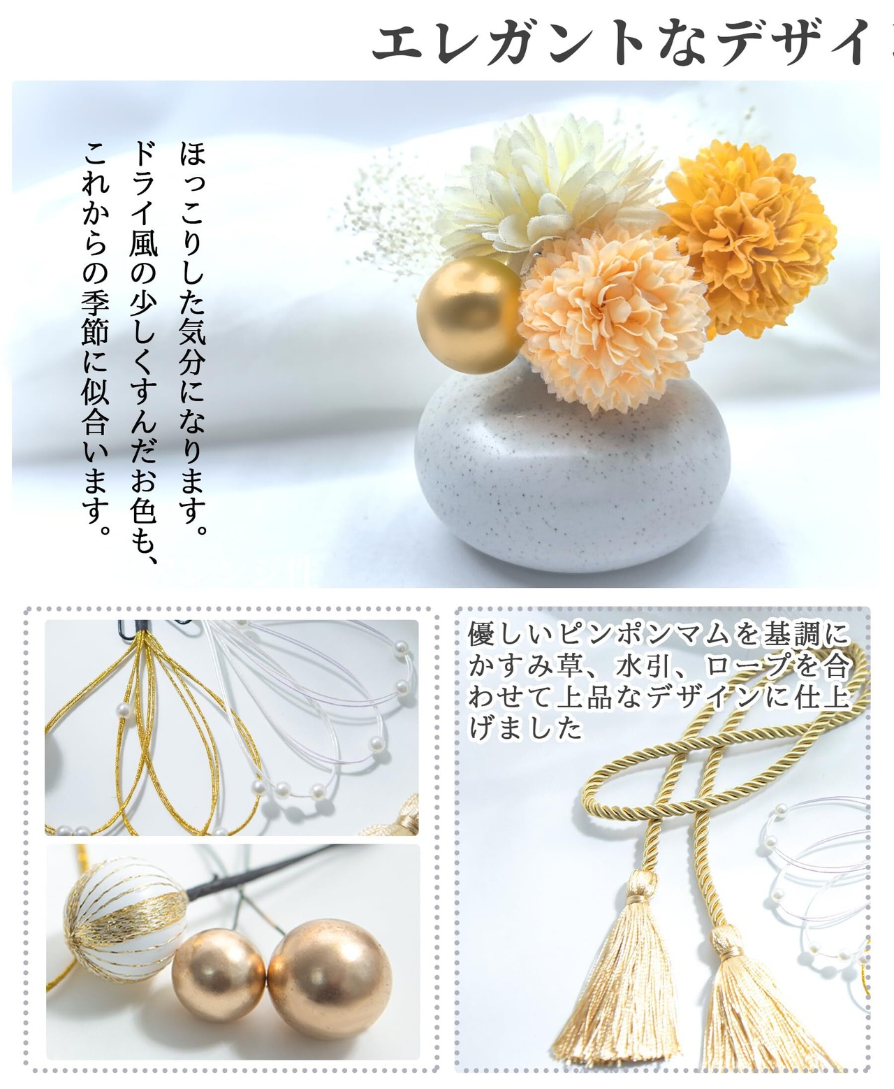 【選び抜かれた素材】高品質のダミーフラワーと結び水引、和玉とアンティークベリーを装飾に使用しています。流蘇は動きを増し、丁寧な手作業も示しています。耐久性が高く、金箔の光沢度があります。その美しさを長時間存在することができます。