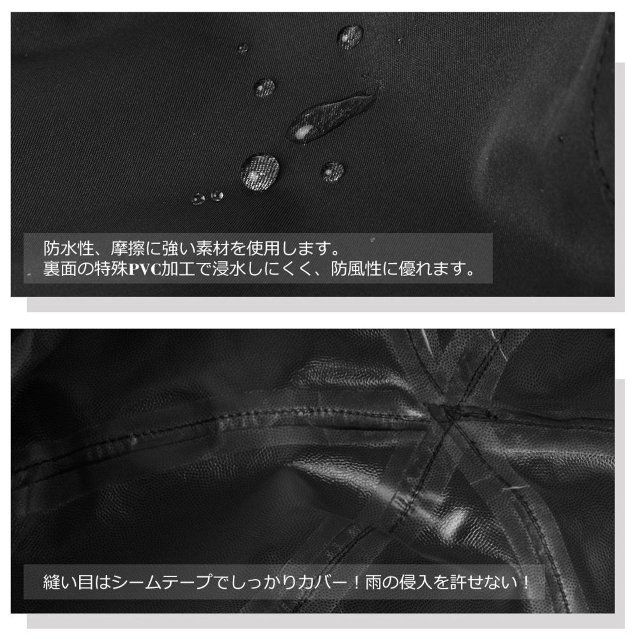 素材は防水性、耐摩耗性に優れた素材を使用し、表面には撥水加工、縫い目には防水加工を施しています