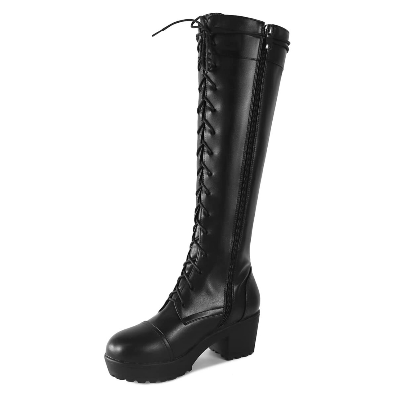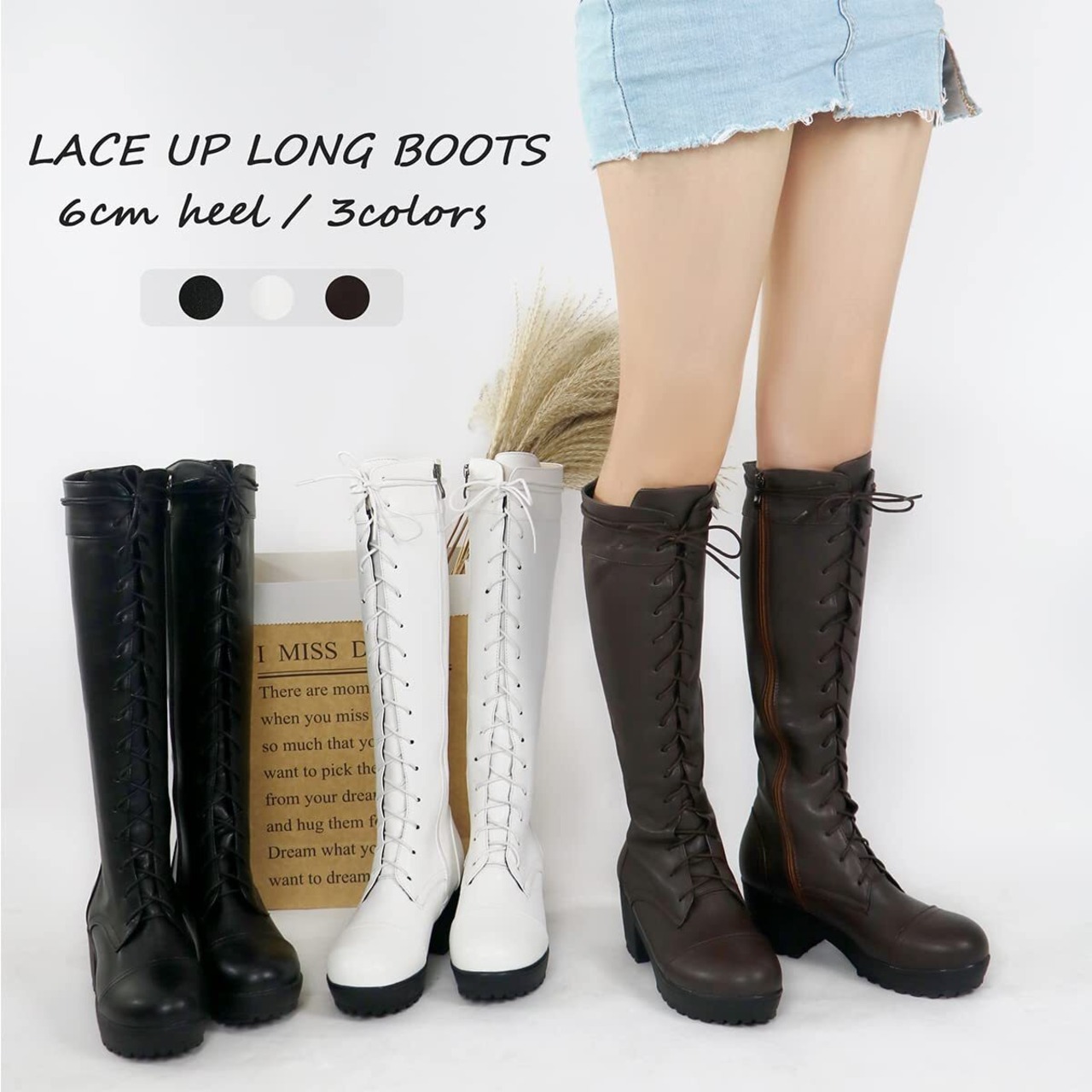 [KutuKowi] レディース 厚底 サイドジッパー ロングブーツ 編み上げ ヒール 厚底ブーツ 大きいサイズ